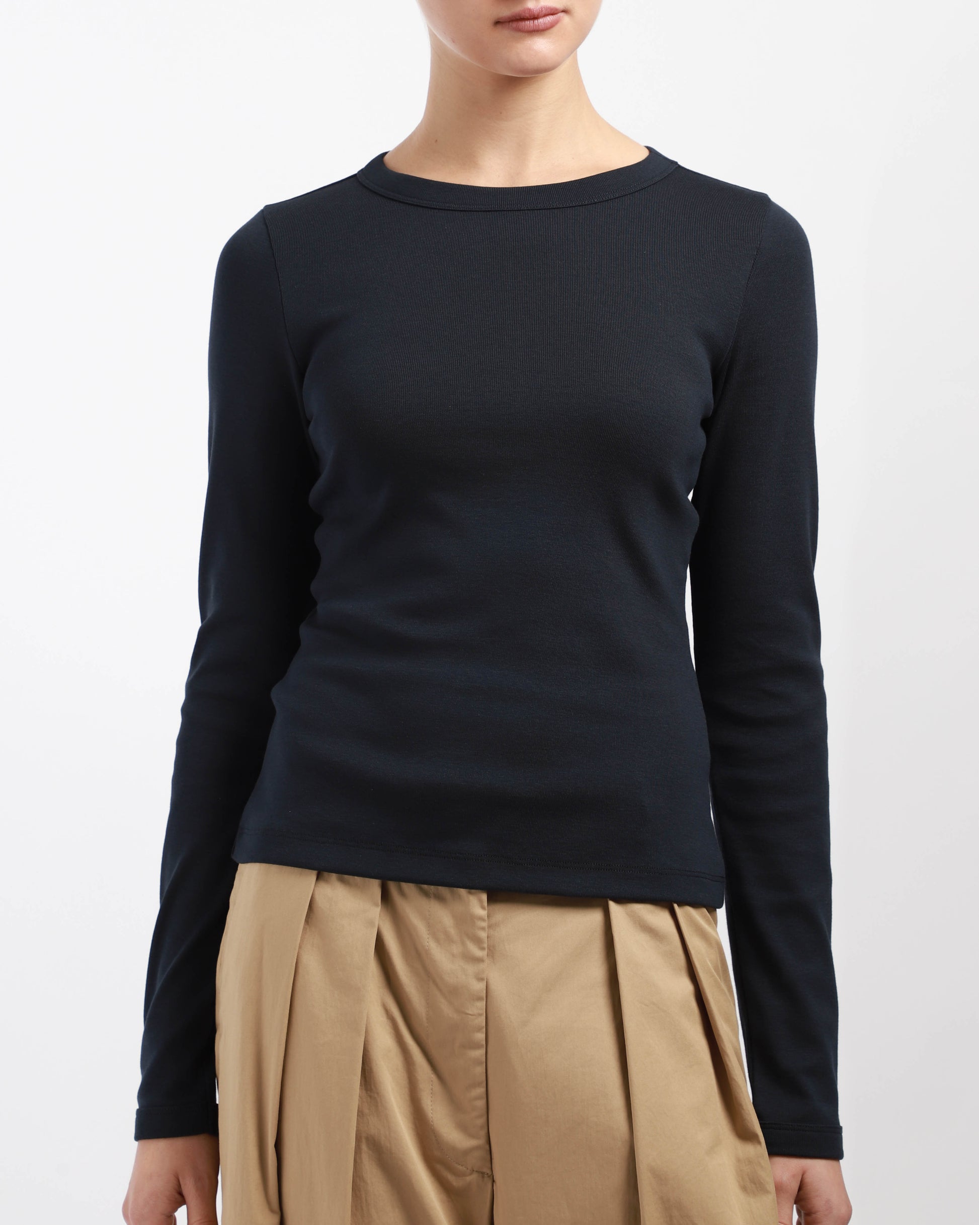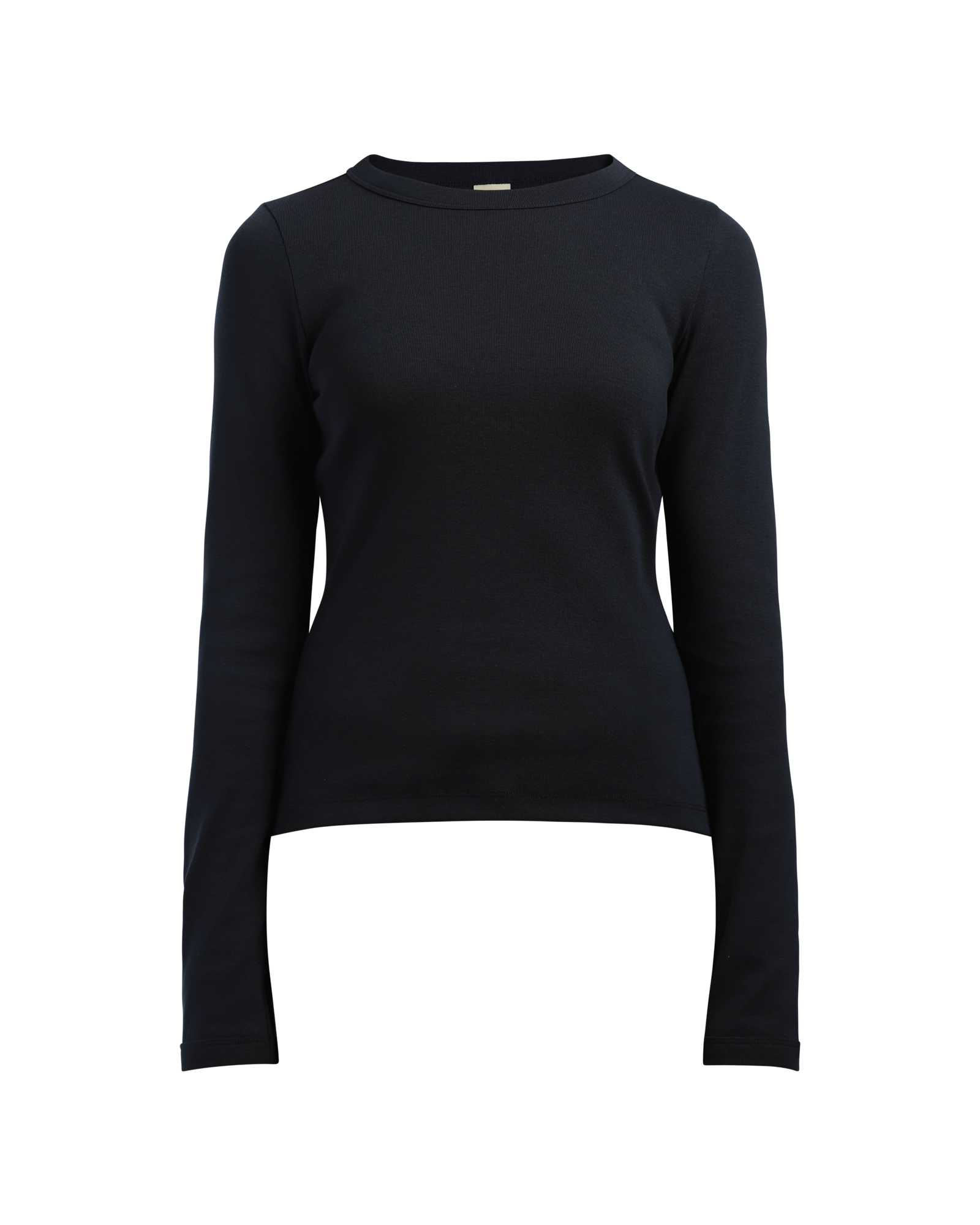 The Max Tee from Flore Flore features a round neckline with classic long sleeves, banded neck and cuffs and offers a fitted silhouette. Made in Portugal.