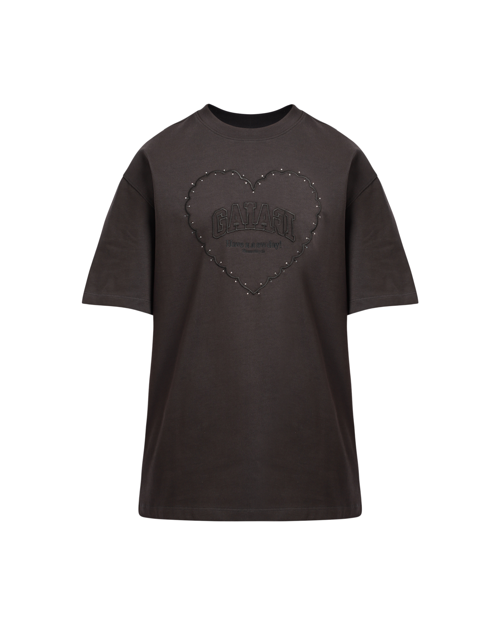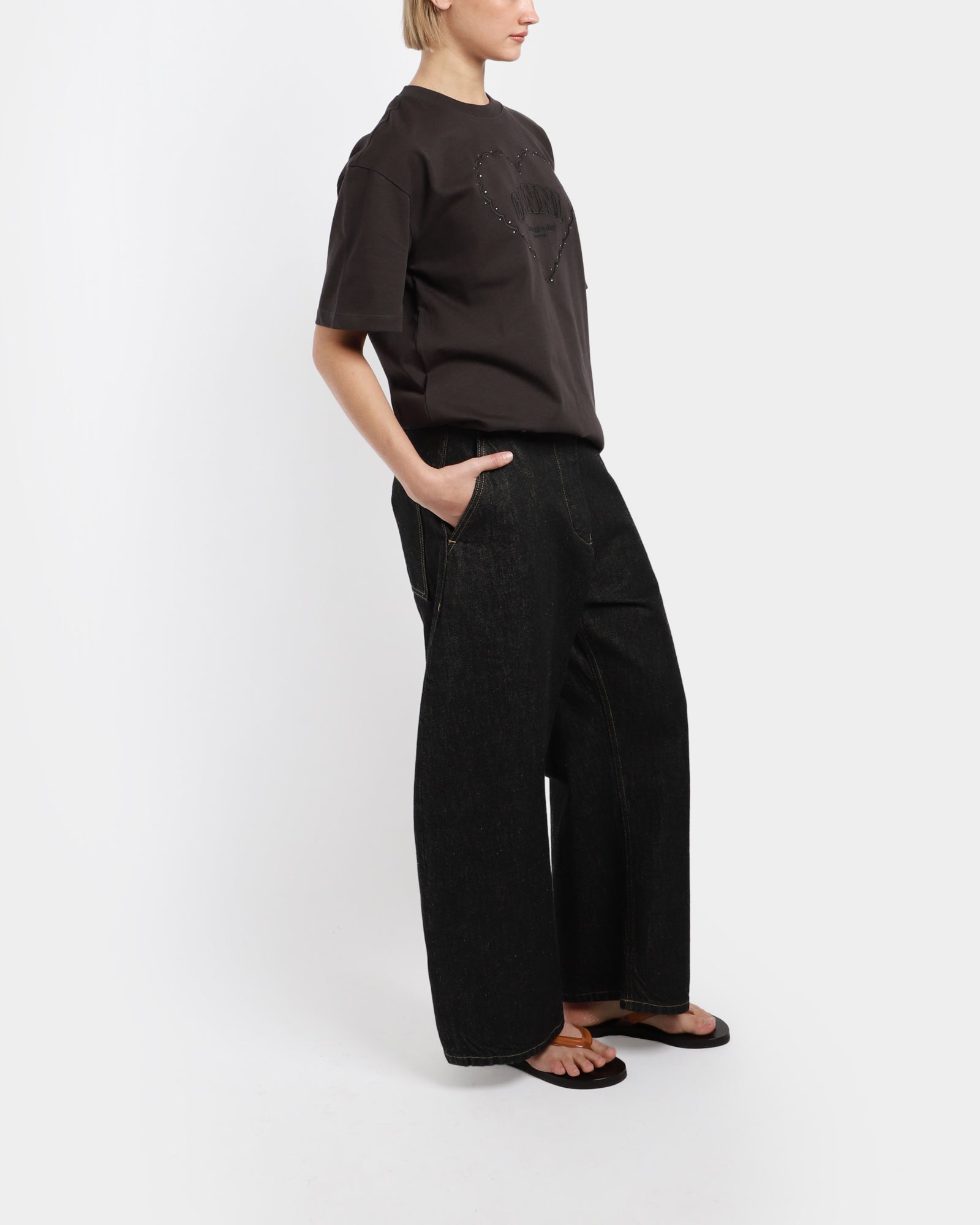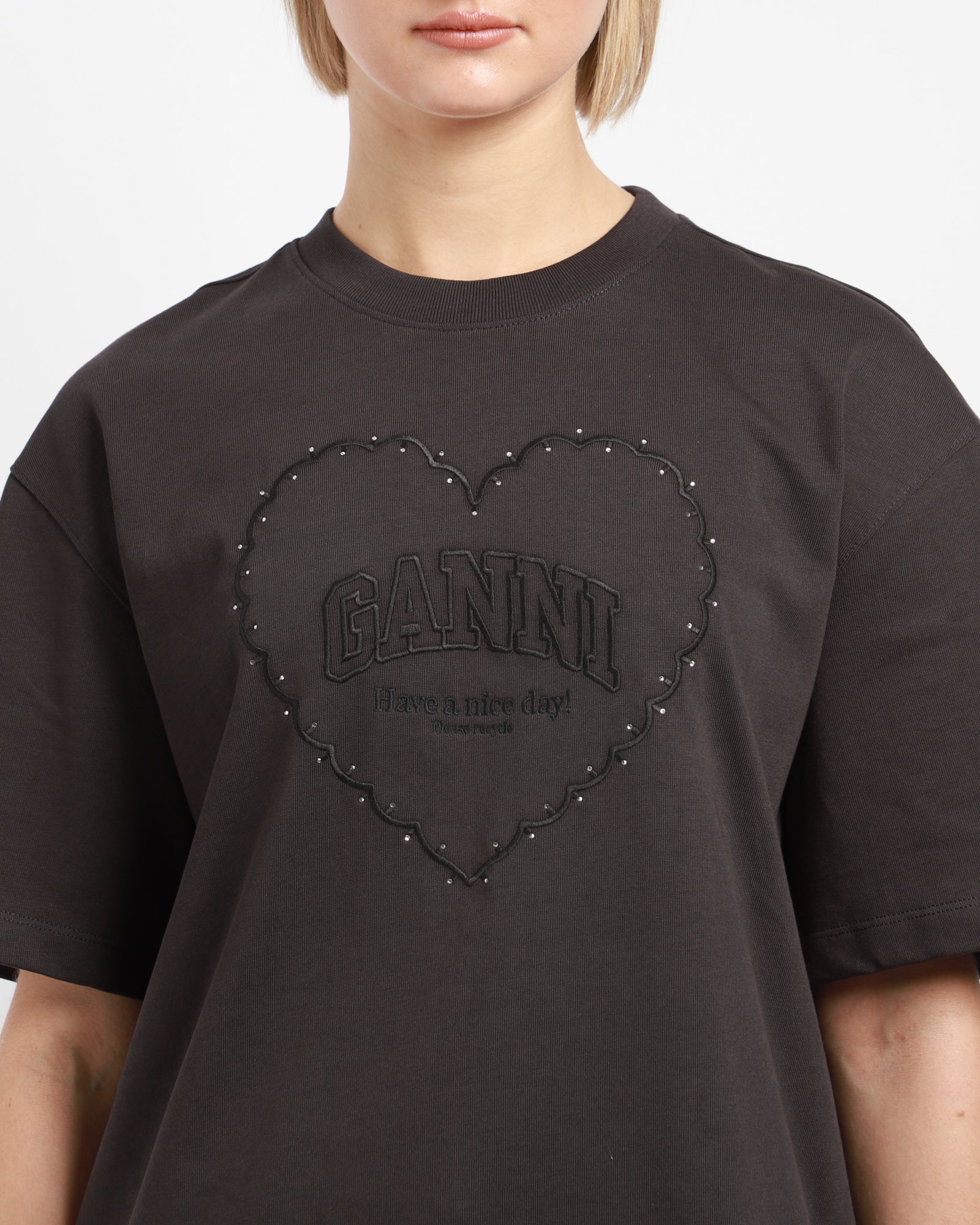 This faded black Drop Shoulder Heart T-shirt is made from a heavyweight organic cotton, and features a round neckline, short sleeves and a GANNI logo.