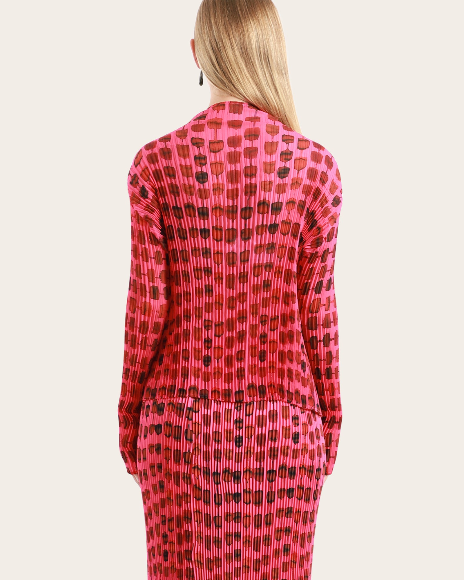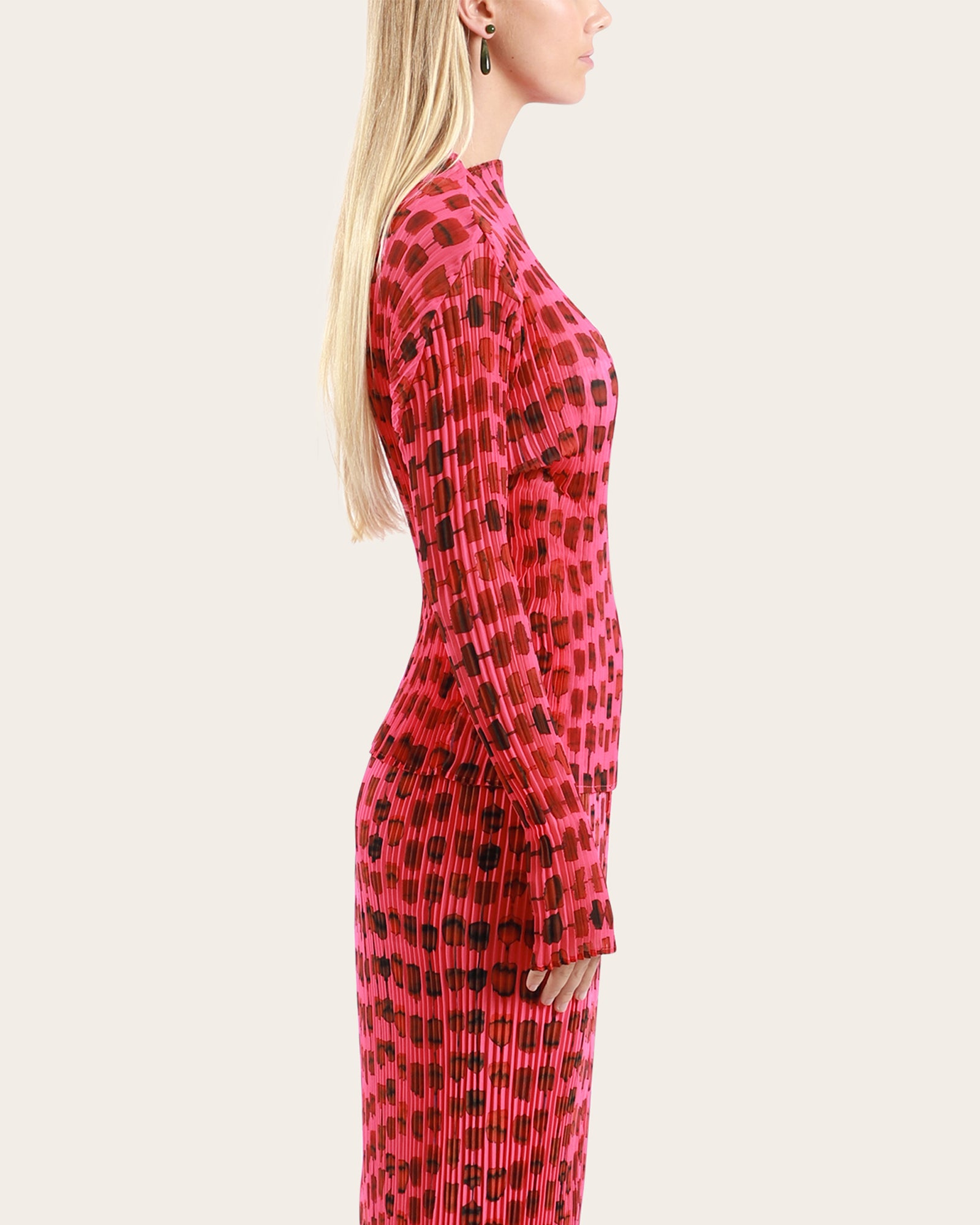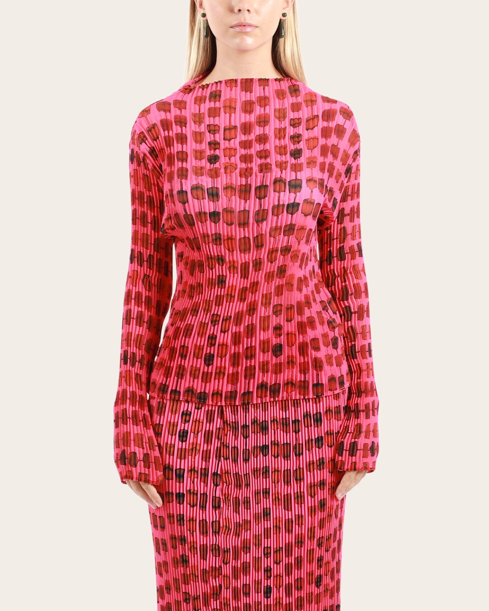 A straight neckline top with long fitted sleeves, this piece showcases Julia Heuer’s signature pleats and exclusive in-house-designed prints. Each piece is unique, with distinctive colour variations. Designed and made in France.