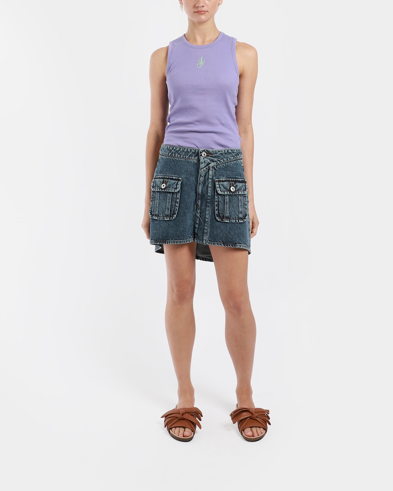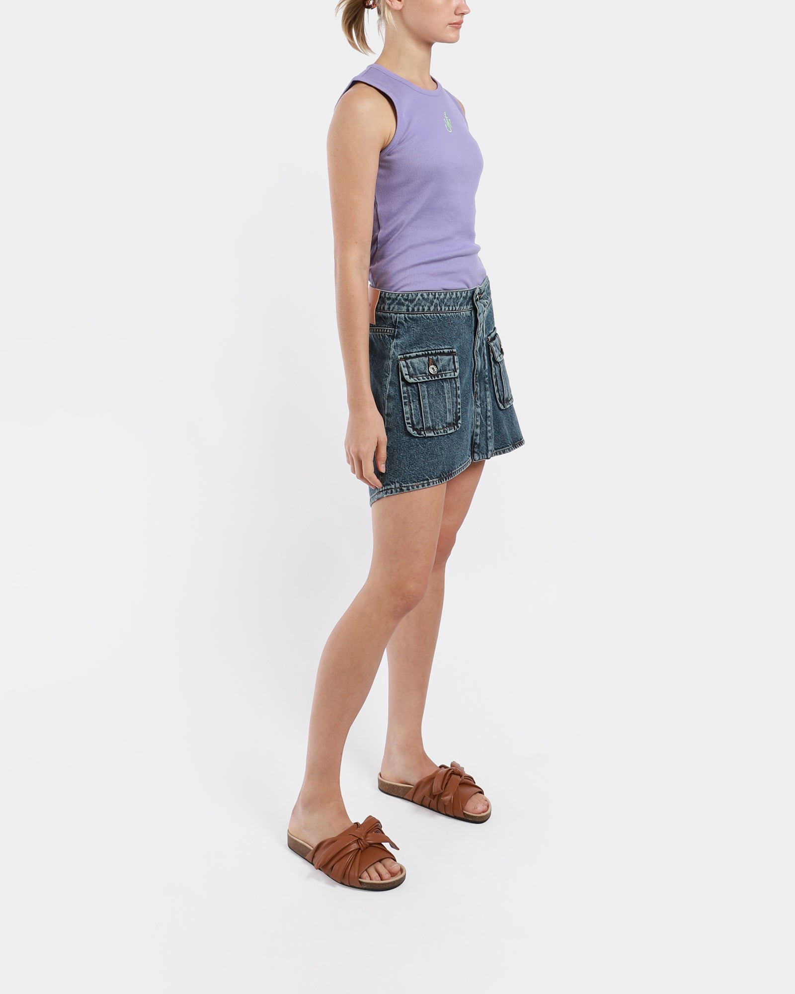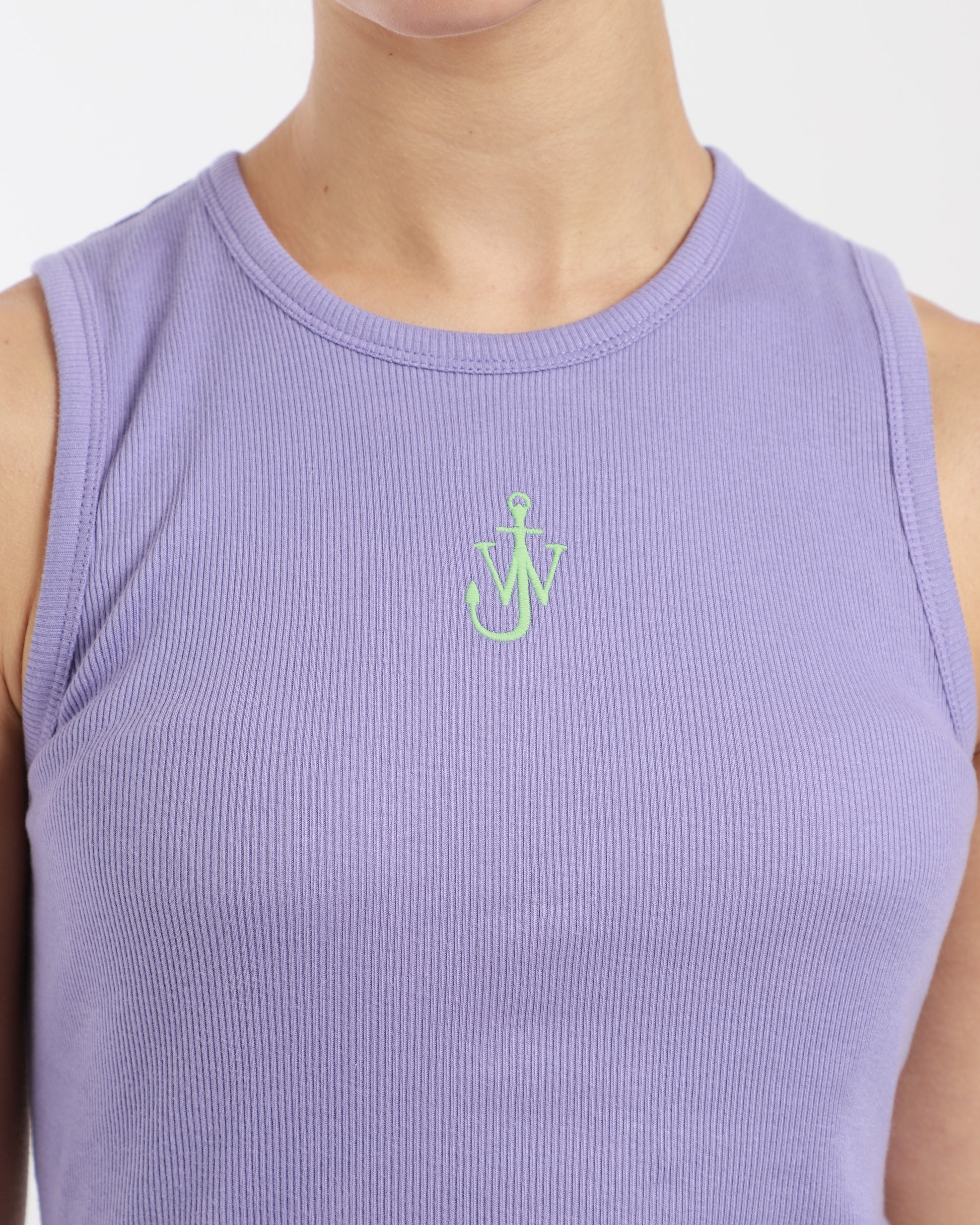 The Anchor Embroidery Tank is made from organic cotton, has a fitted silhouette with a scoop neckline, racerback and a contrast anchor embroidery on upper centre front.