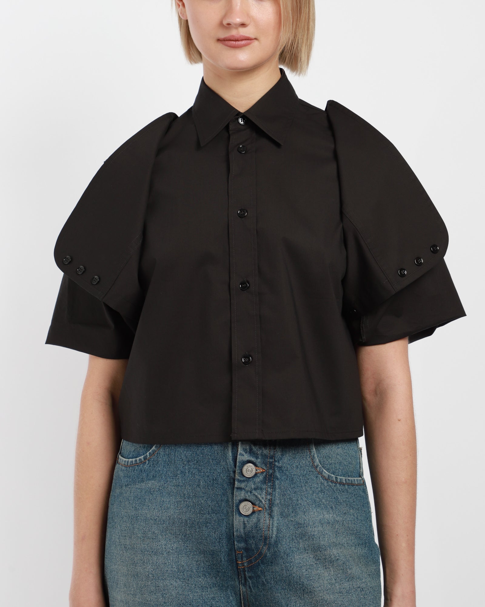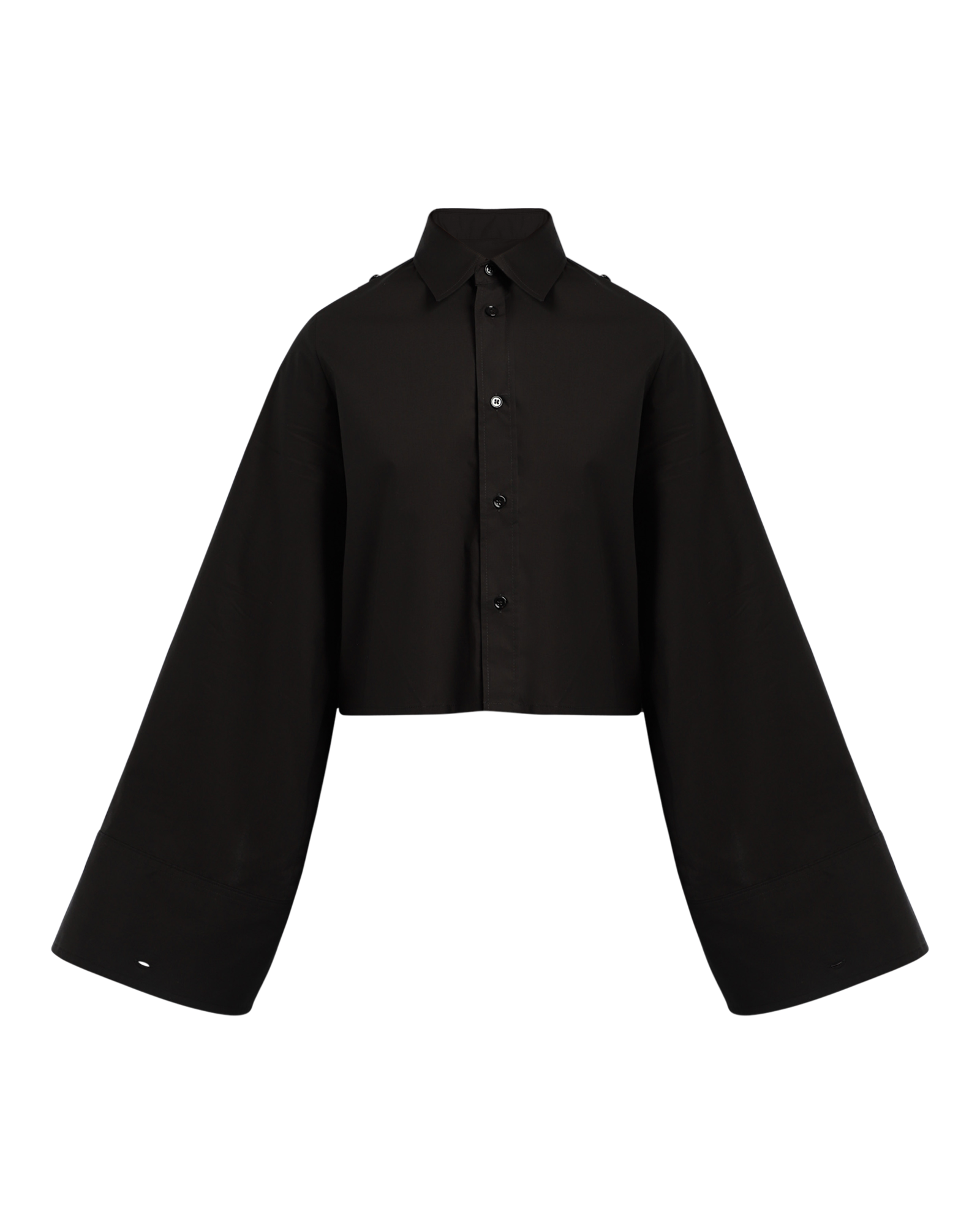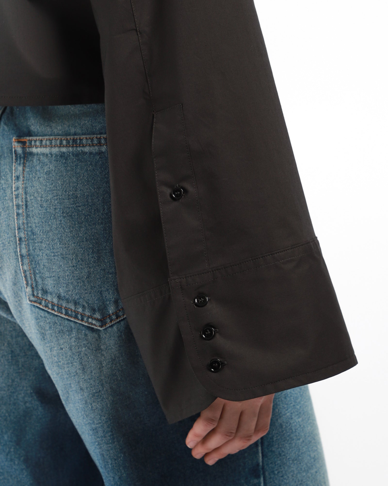 A versatile cotton poplin shirt tailored to a classic yet cropped silhouette. It can be worn with the sleeves buttoned up for a short-sleeve fit or left long for a wide long-sleeve fit. It features a button placket and buttoned cuffs.
