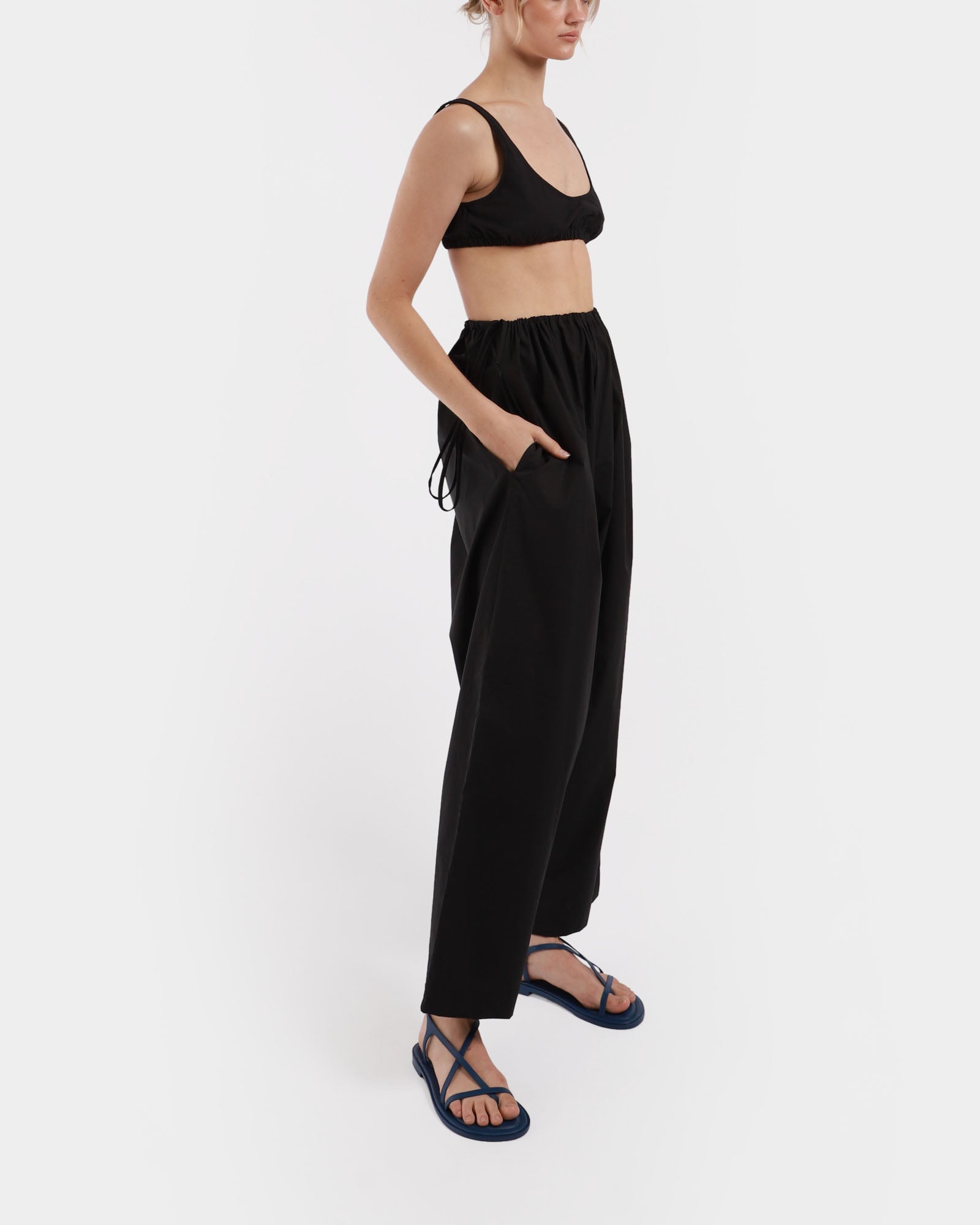 The Bralette is made from soft, crisp Japanese BCI cotton and features a gathered, elasticised bottom band, armholes and lap-over side seam detailing. Made in USA.
