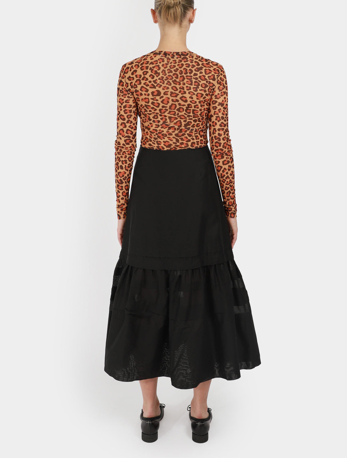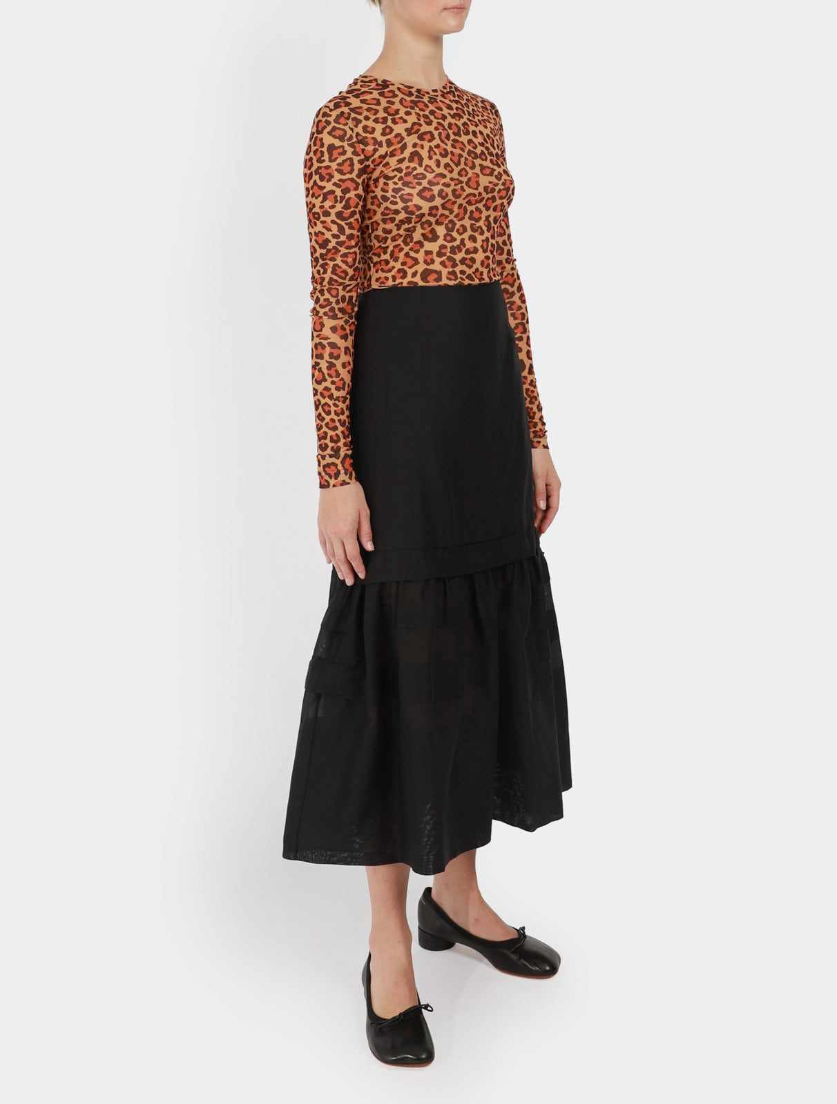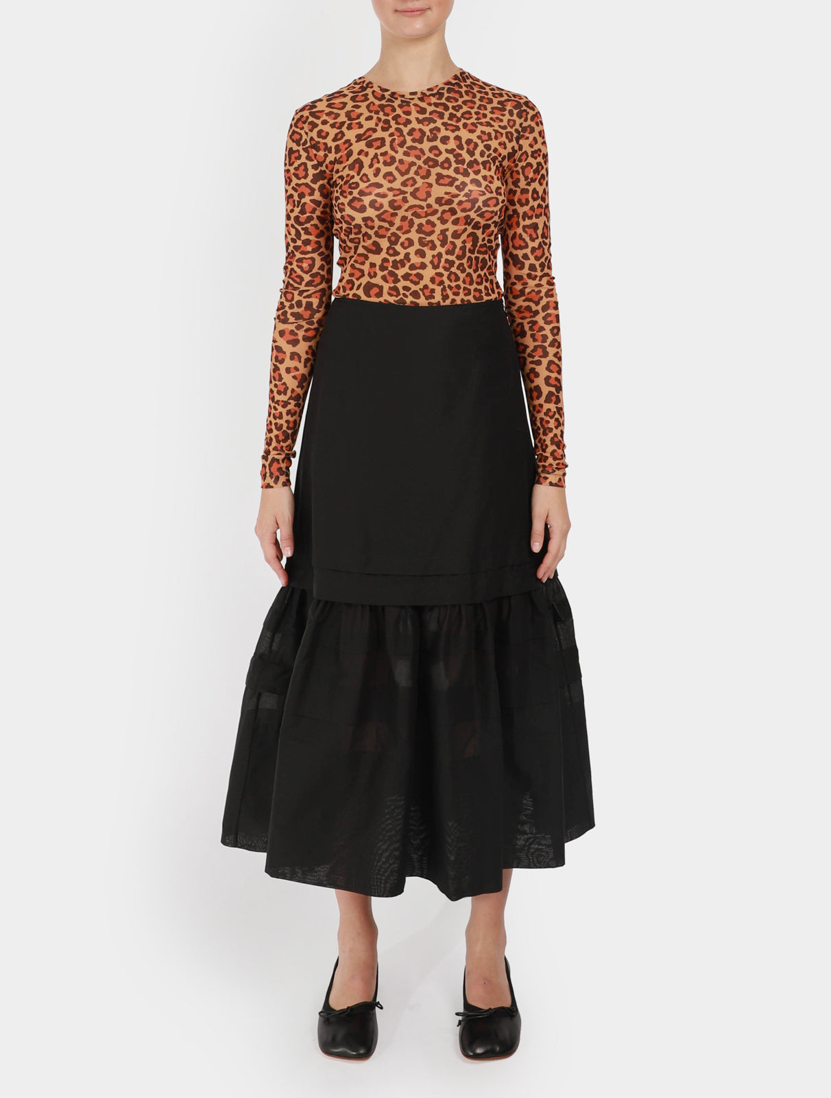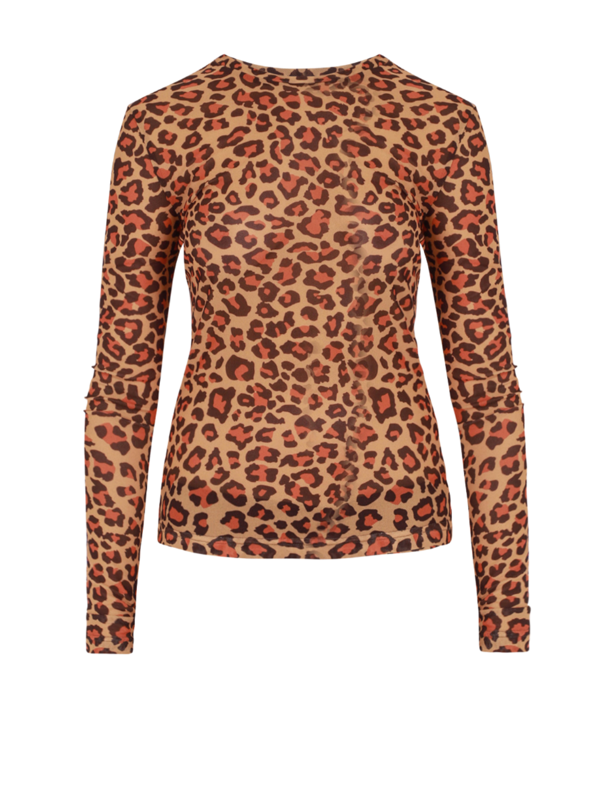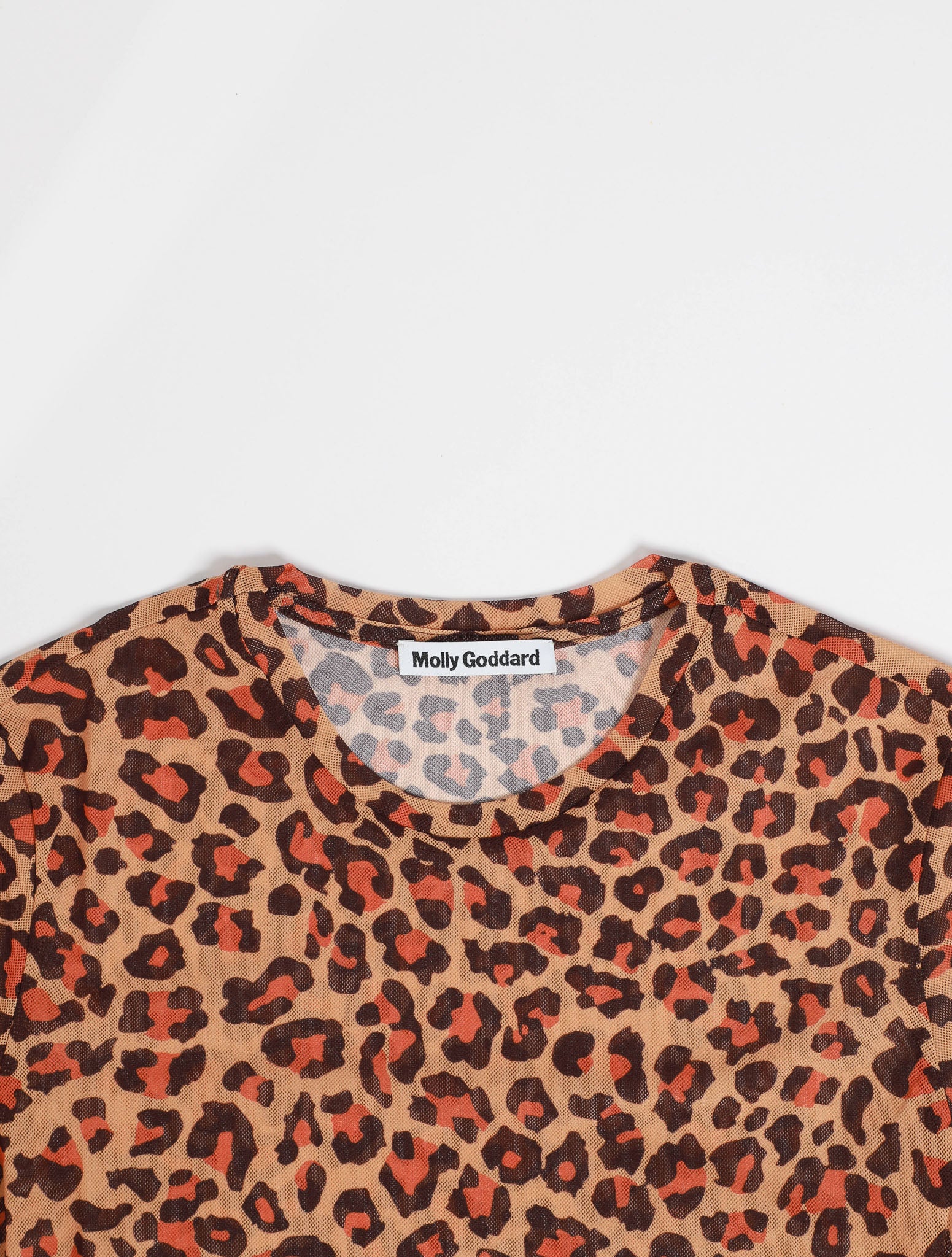 Molly Goddard top in semi-sheer stretch leopard print mesh fabric, featuring a close-fit silhouette, top simply pulls on.