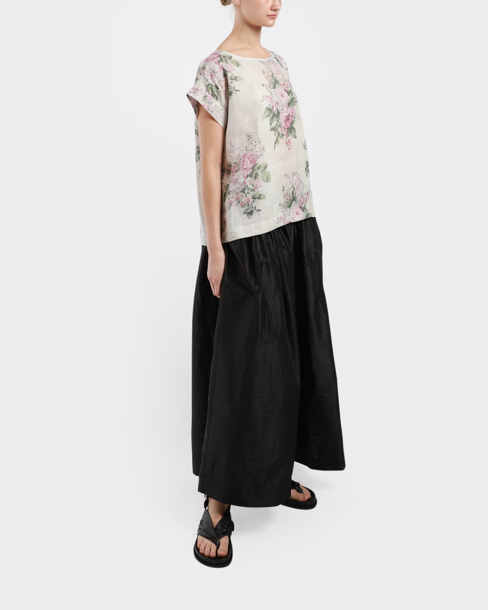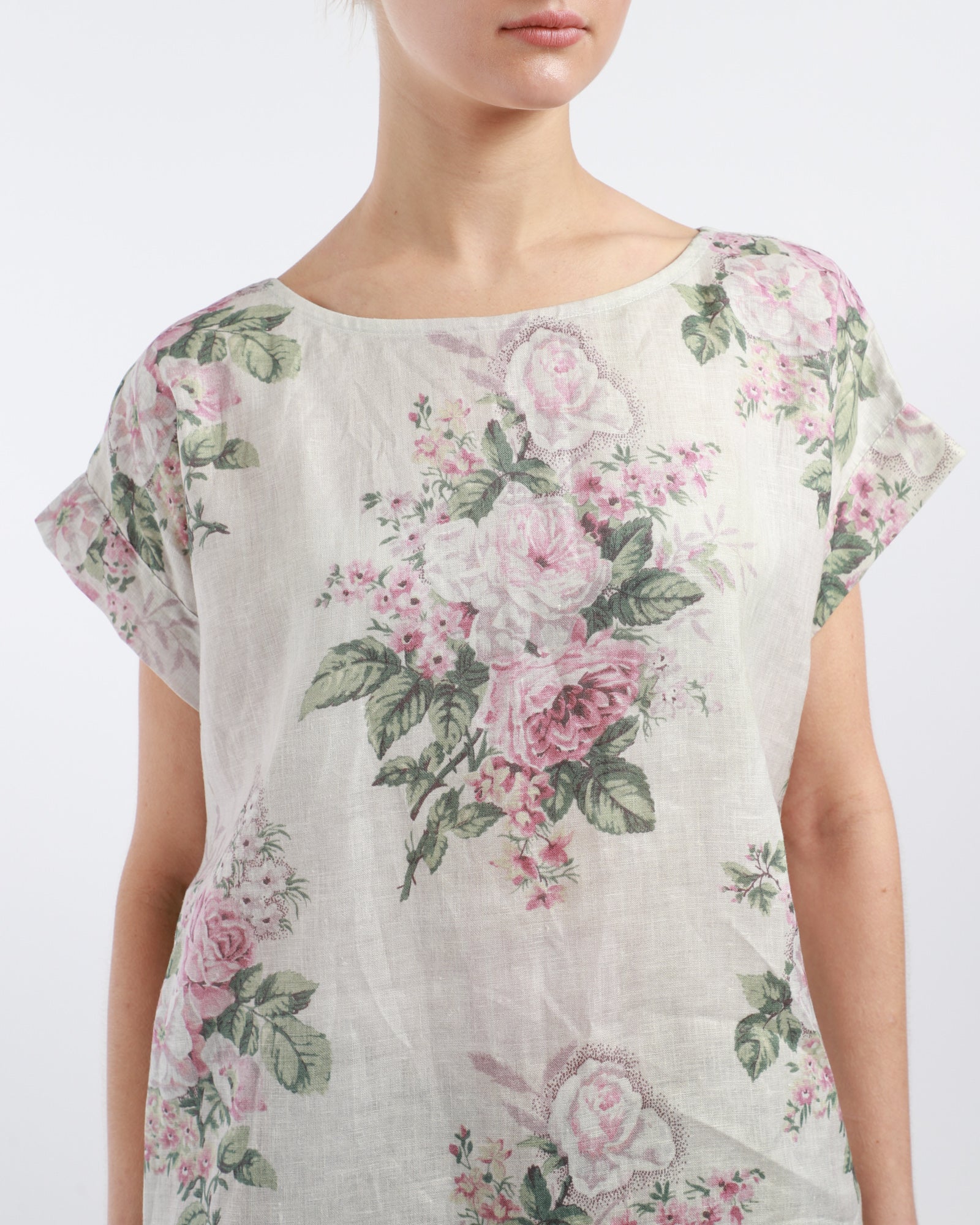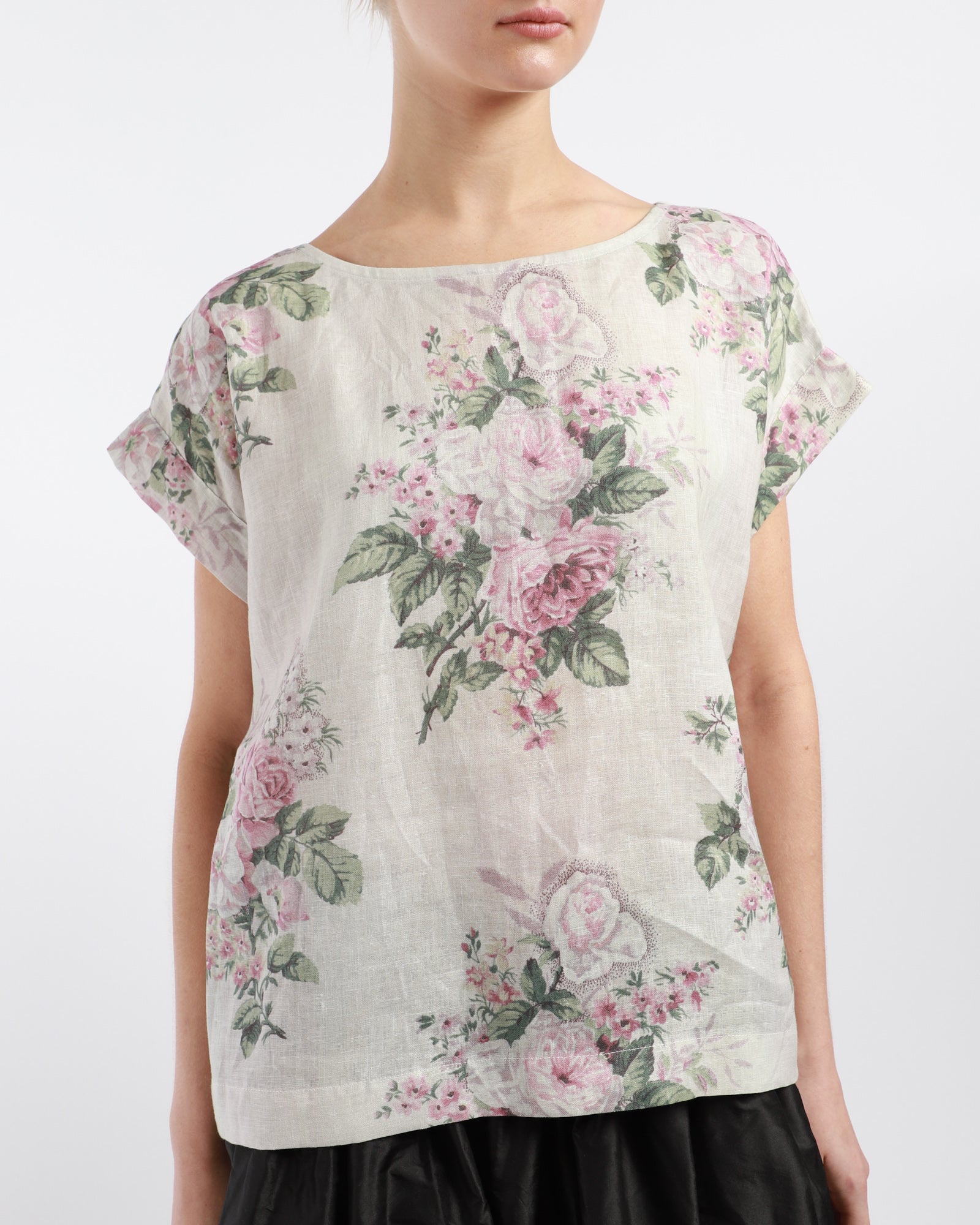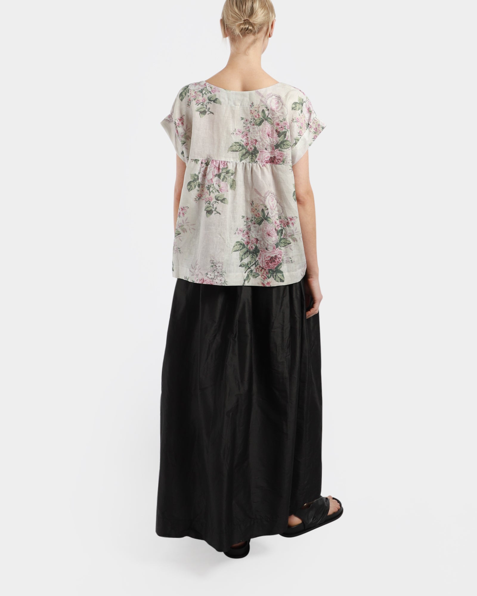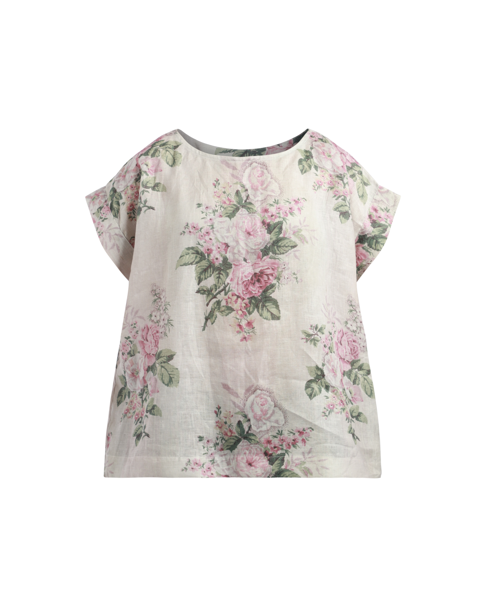 The Tea Rose Top is a lightweight pure linen piece with an intricate all-over print. Featuring short sleeves, a boat neckline, and a flattering flat front with a gathered back, it’s designed with a wide hemline for an effortless silhouette. Made in Australia.