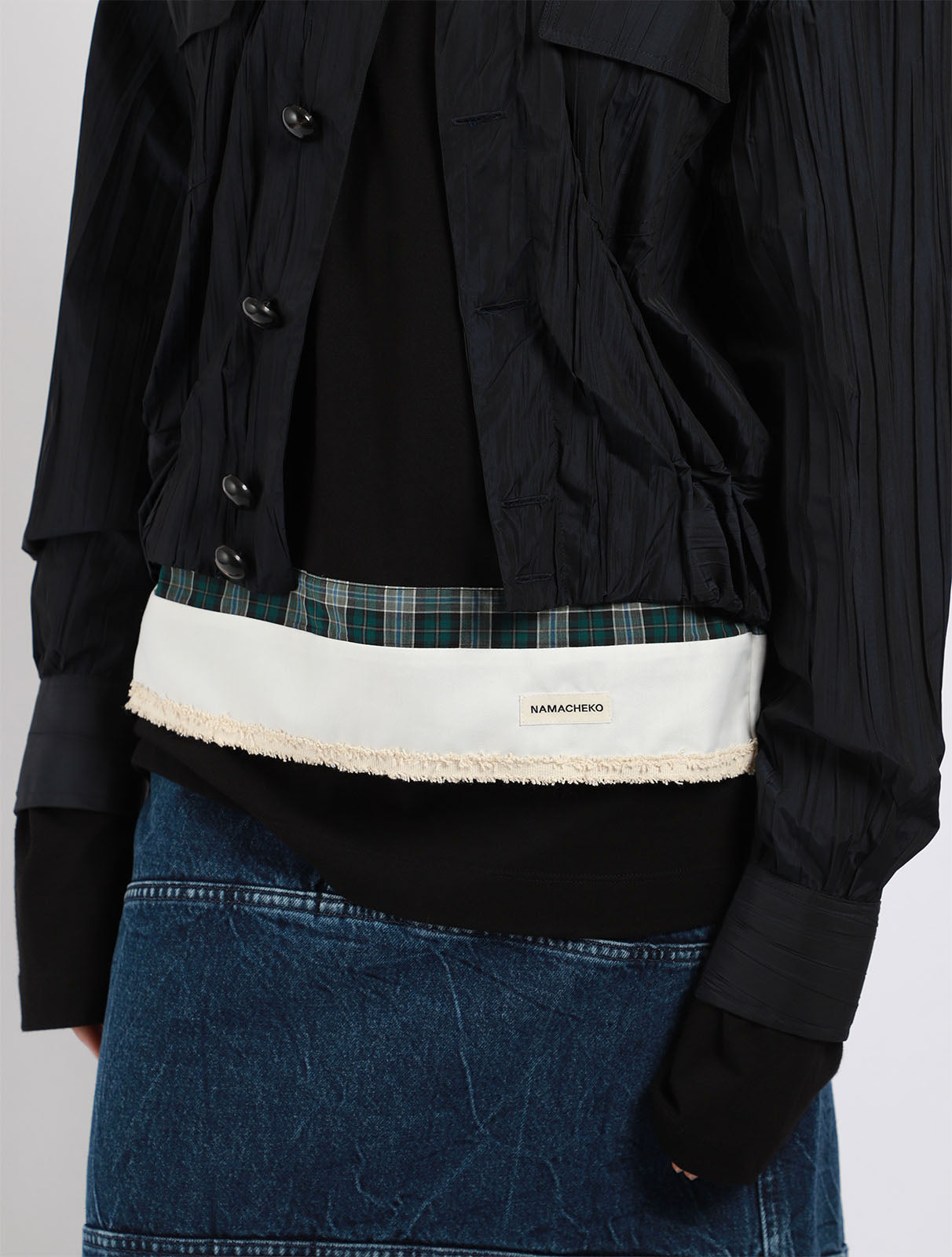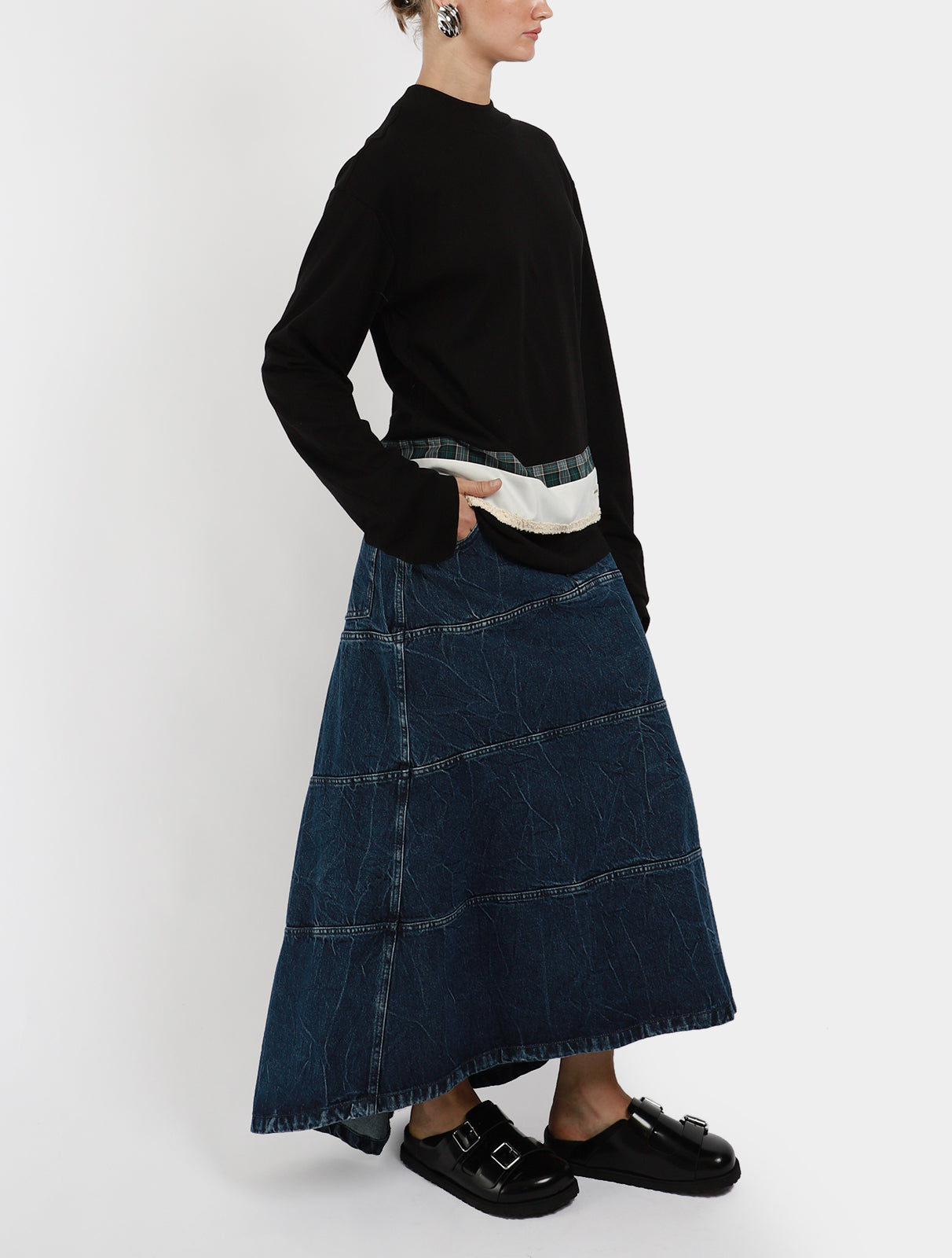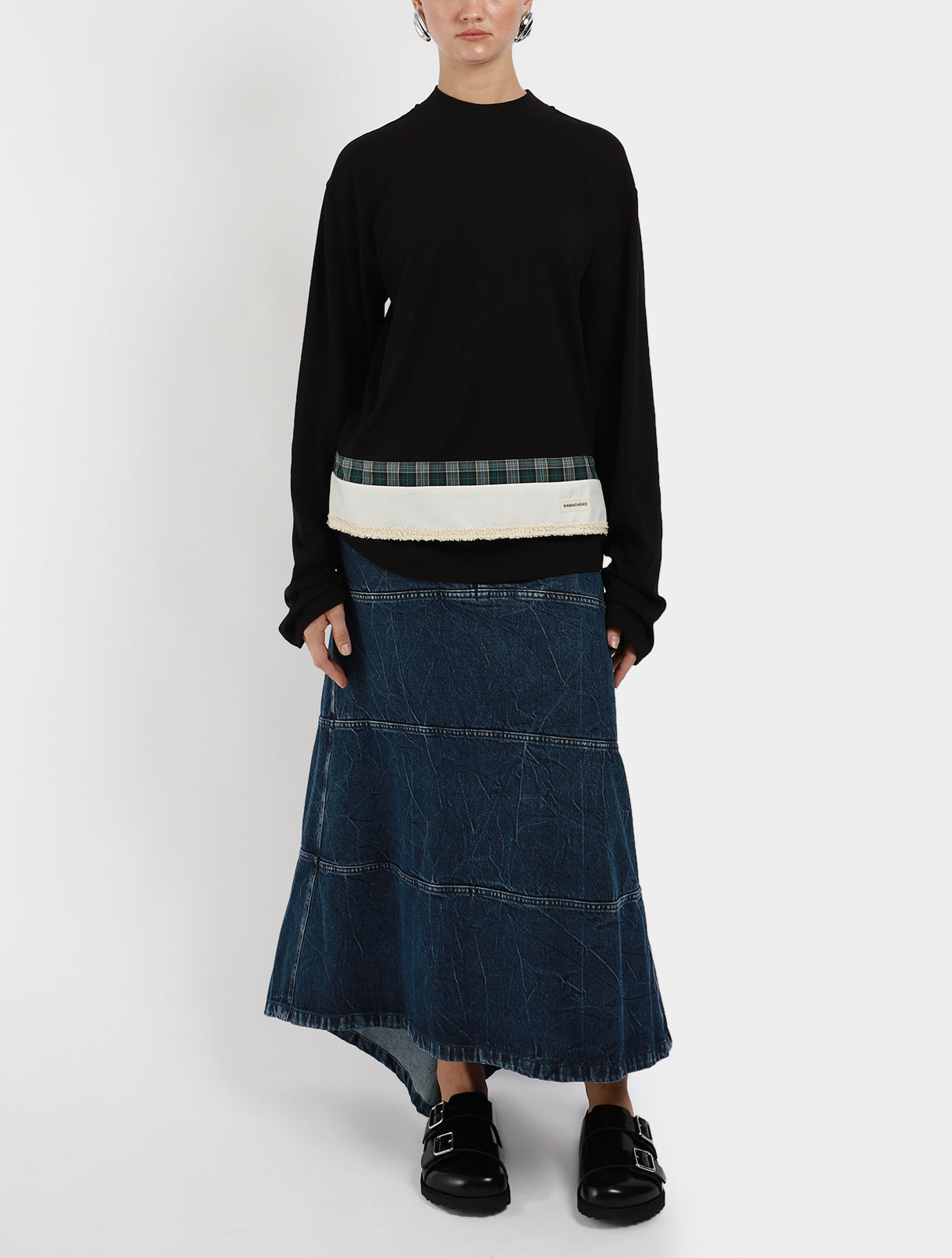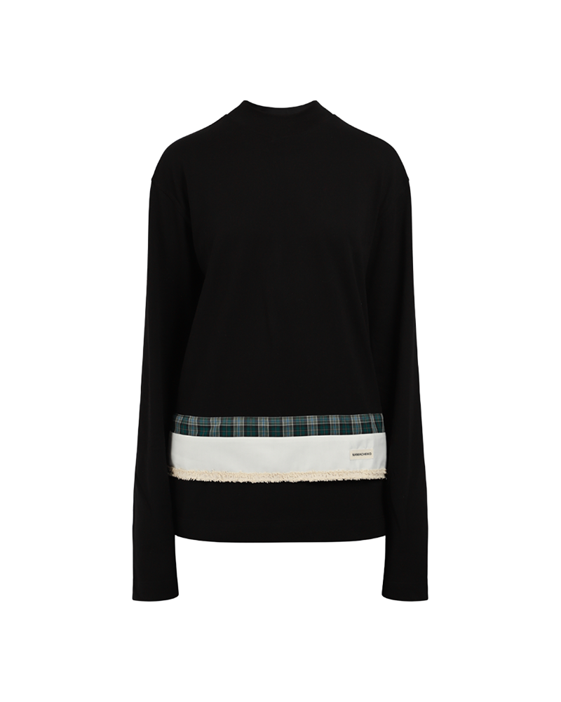 - Mixed of different patterns and fabrics detail at bottom of T-Shirt