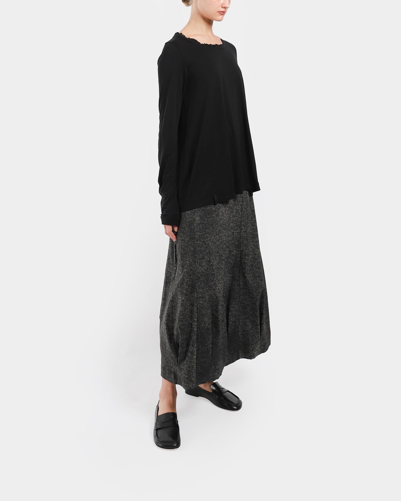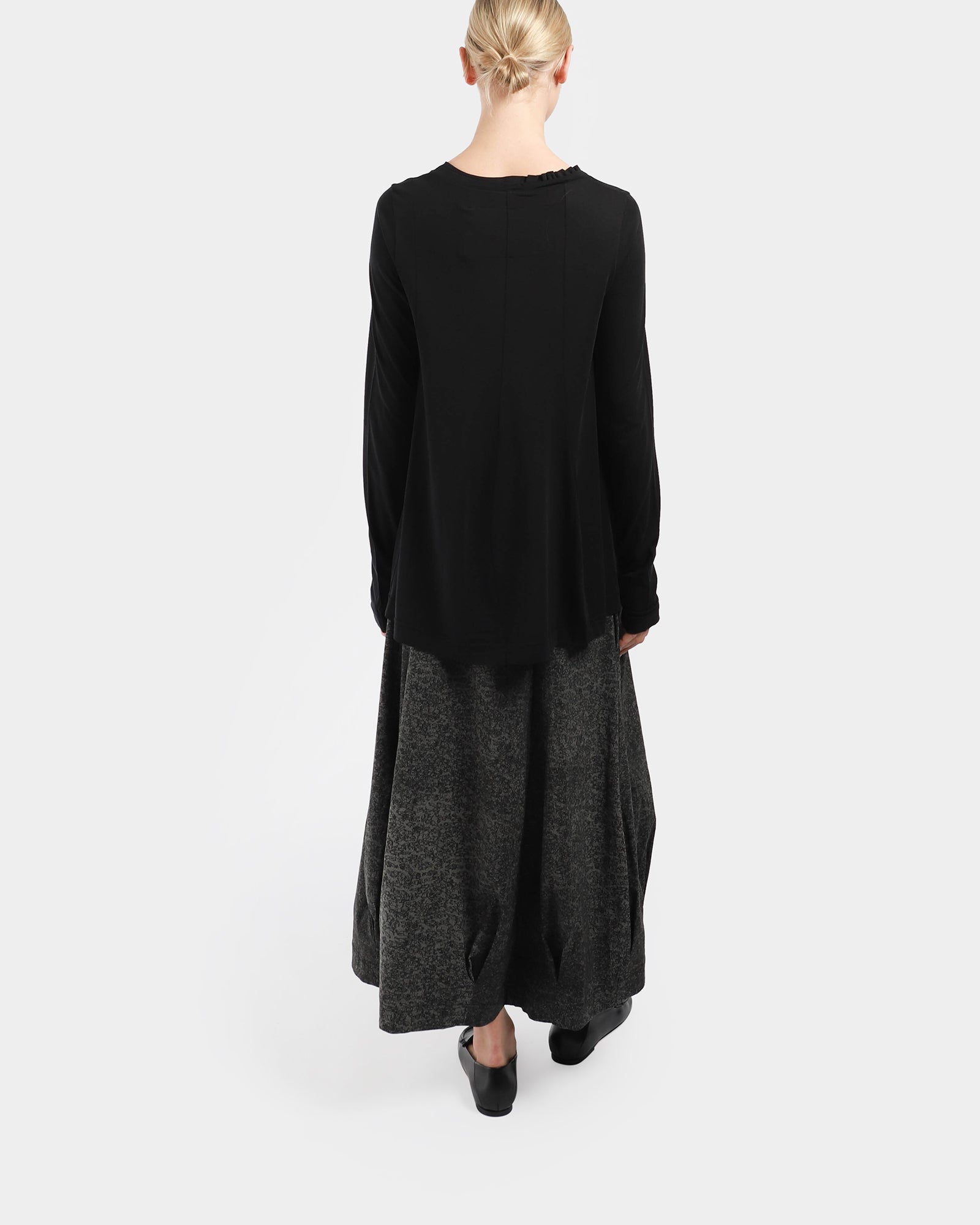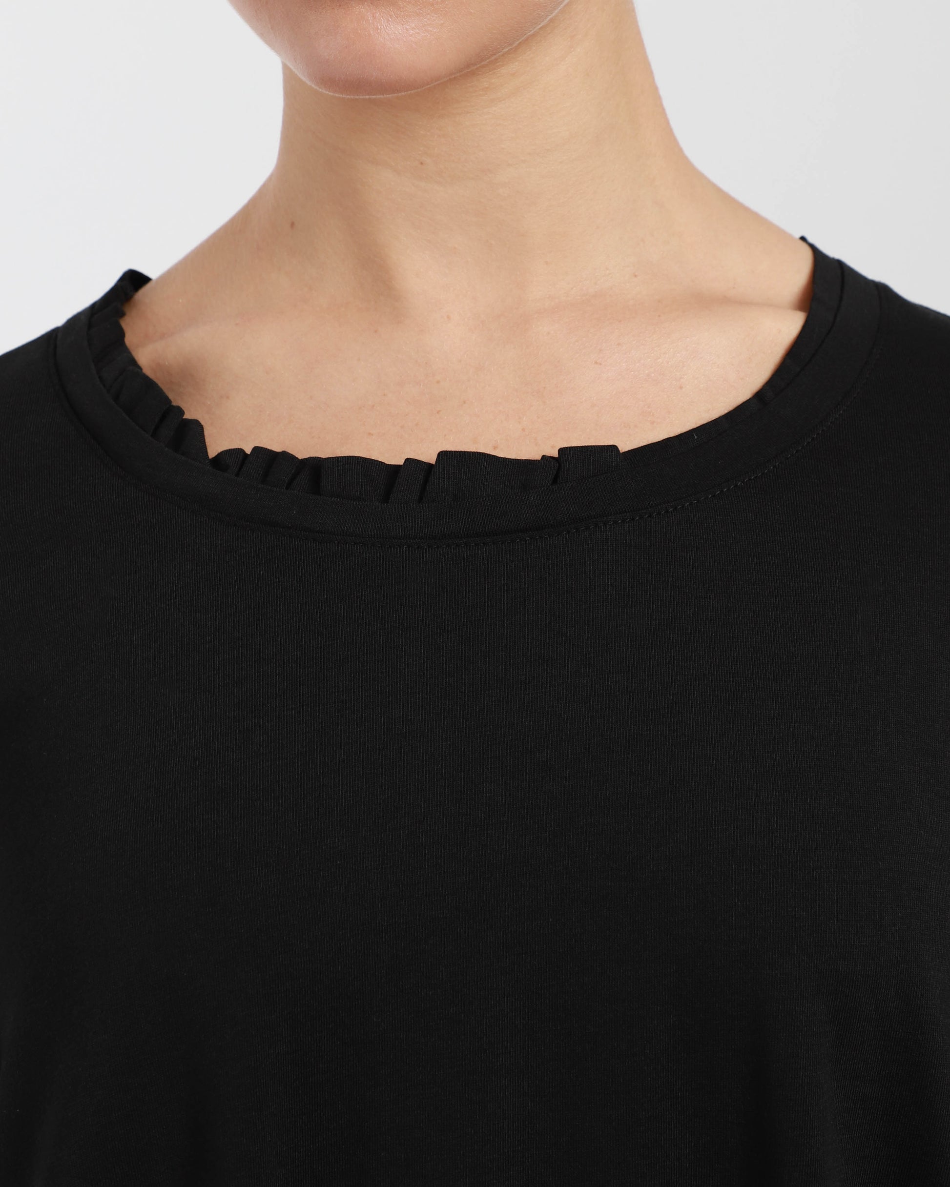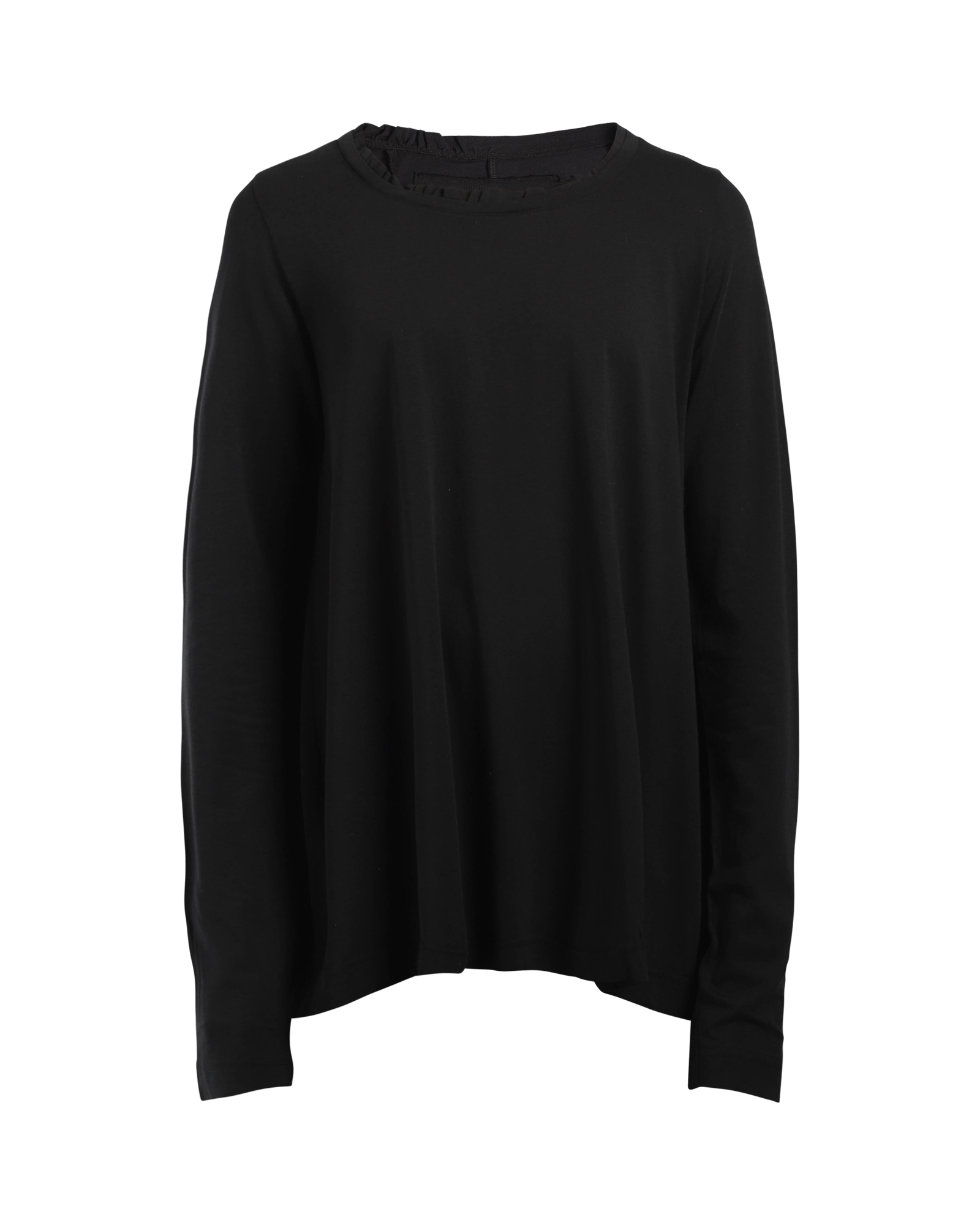 This long sleeve t-shirt, feature a round neckline with ruffle detail, lightweight with a slight oversized look. Made in Portugal.