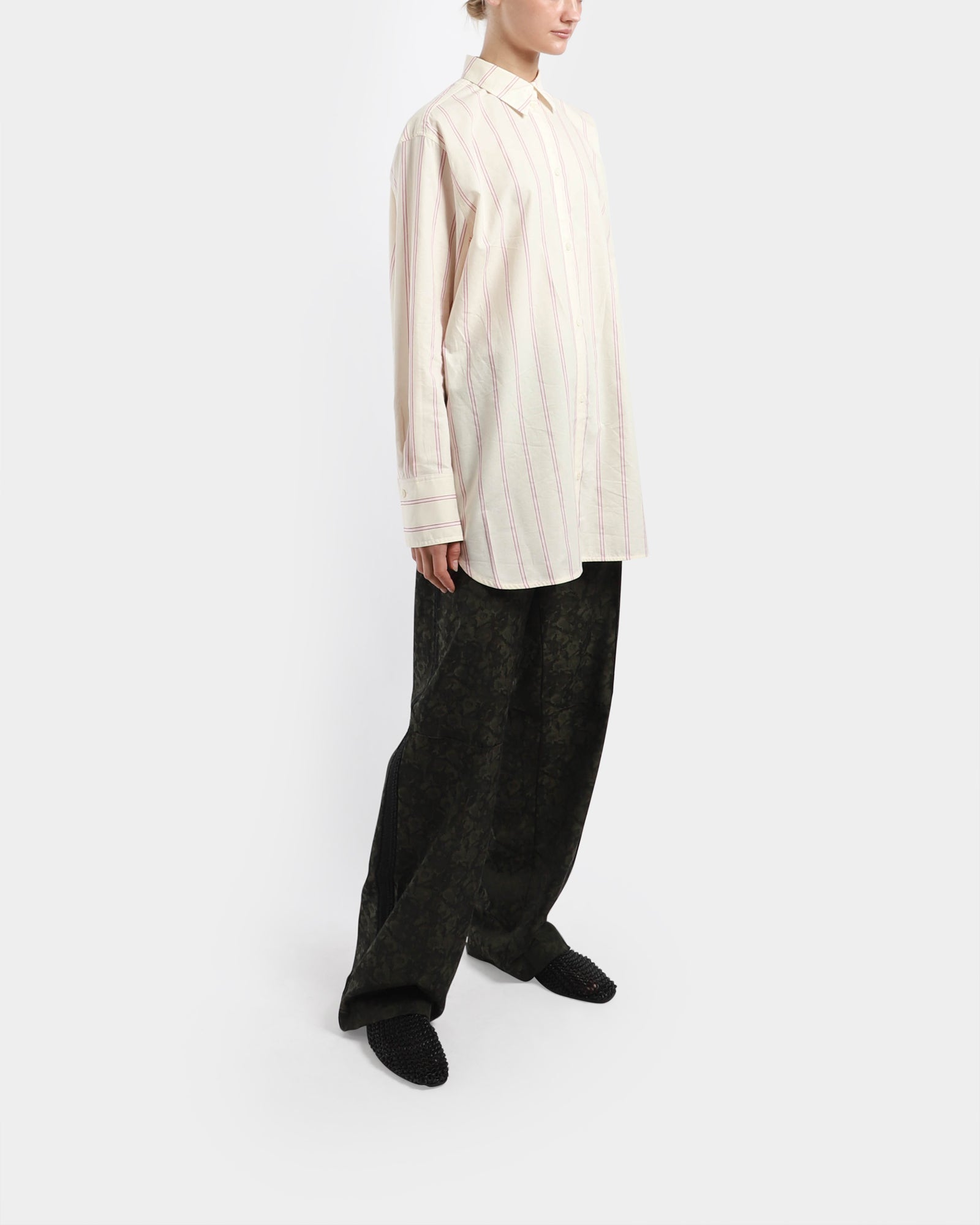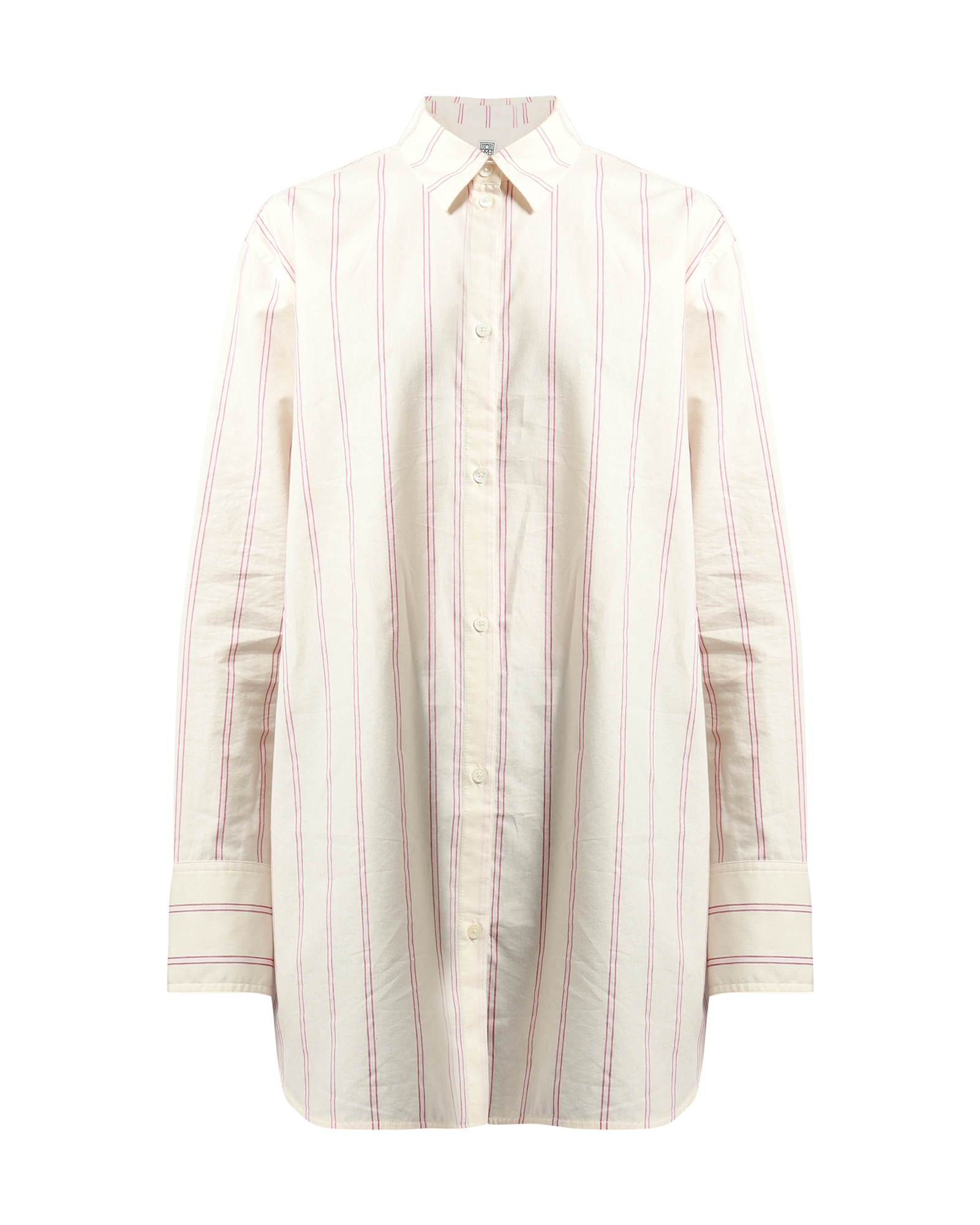 A relaxed striped shirt made in a light cotton blend woven, featuring a classic collar and buttons at front, long sleeves with buttons at cuff.