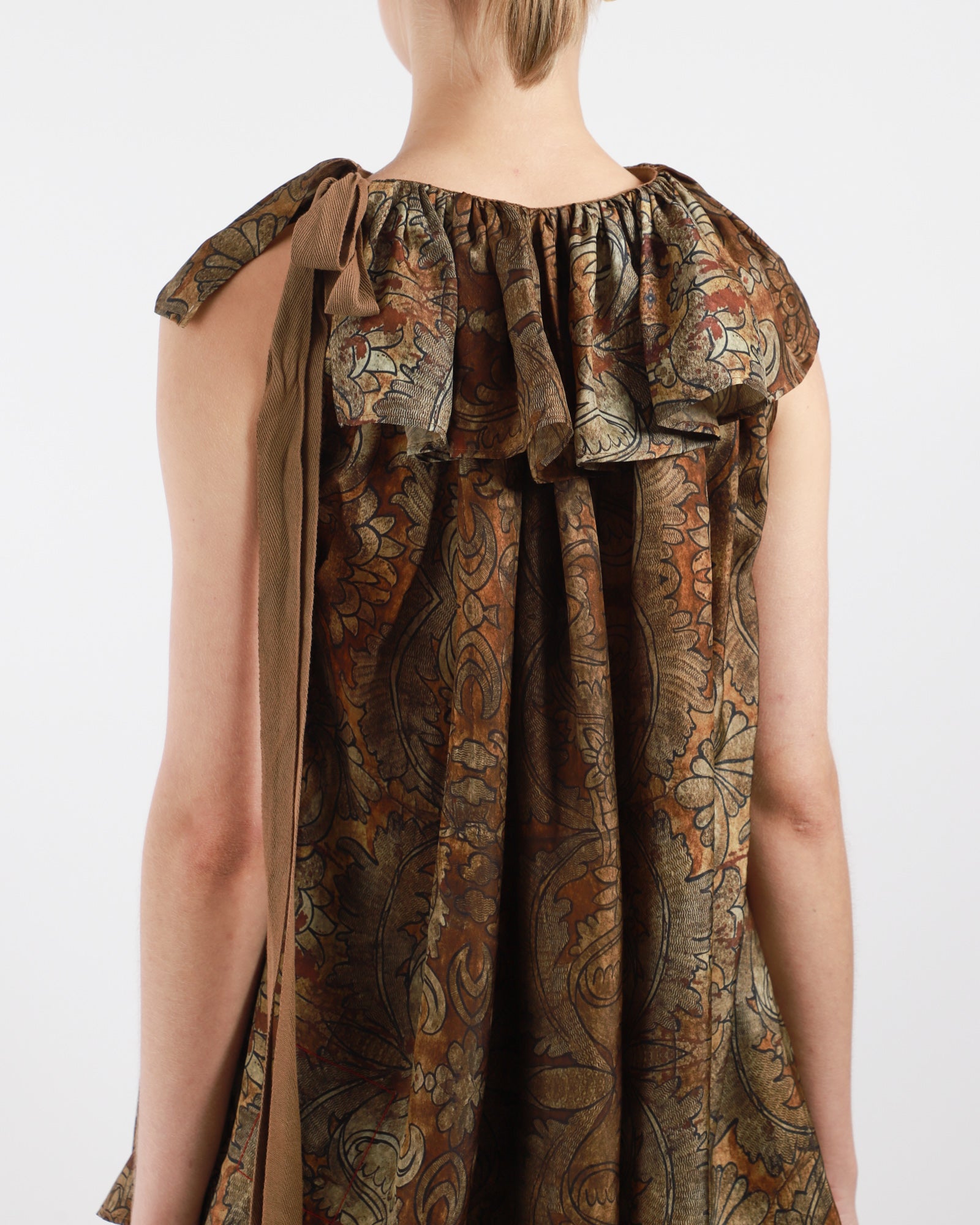 - Tie closure at back