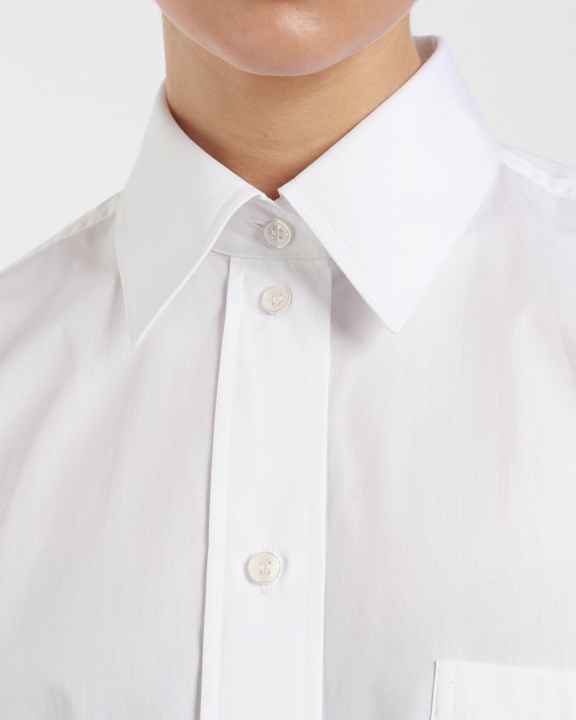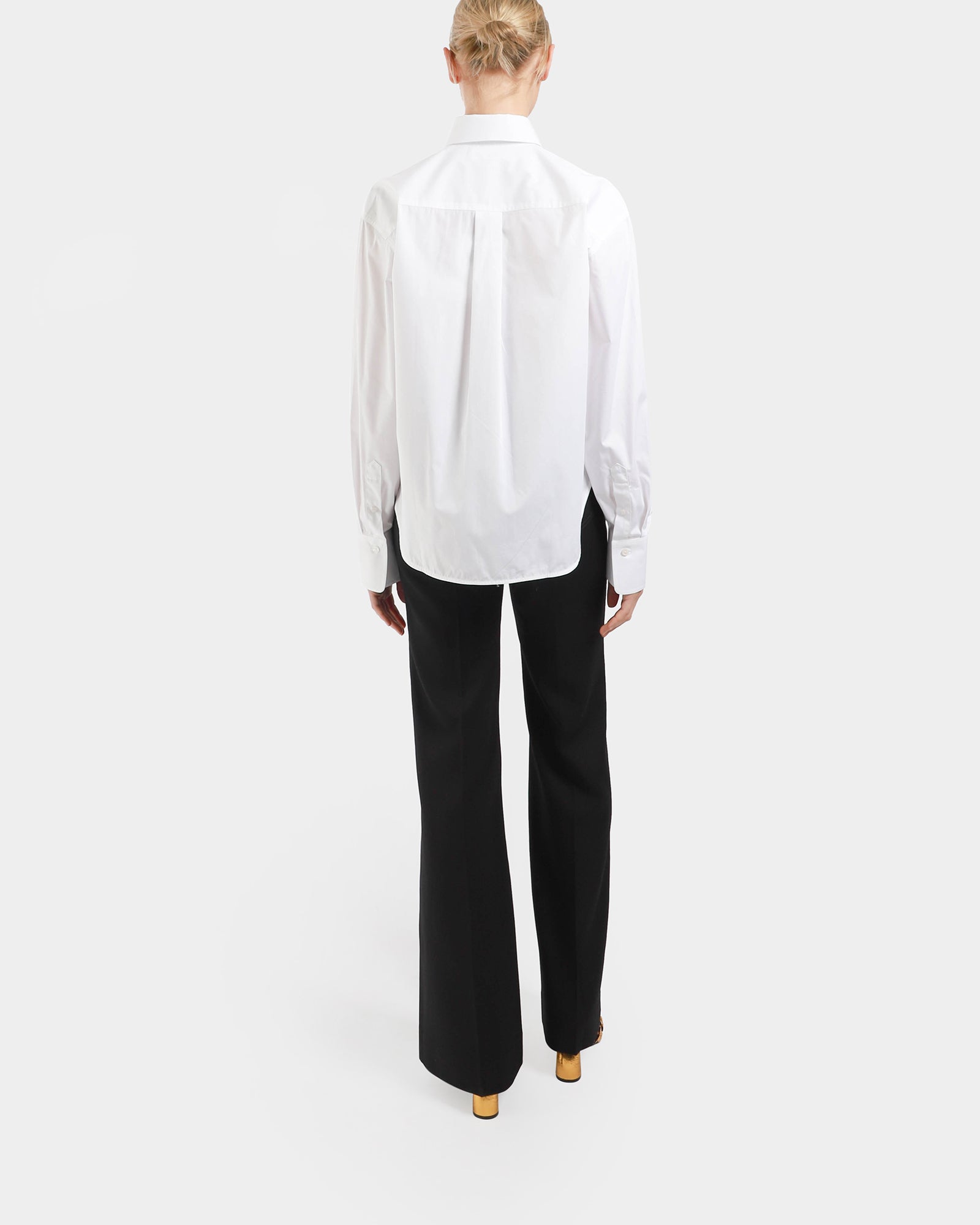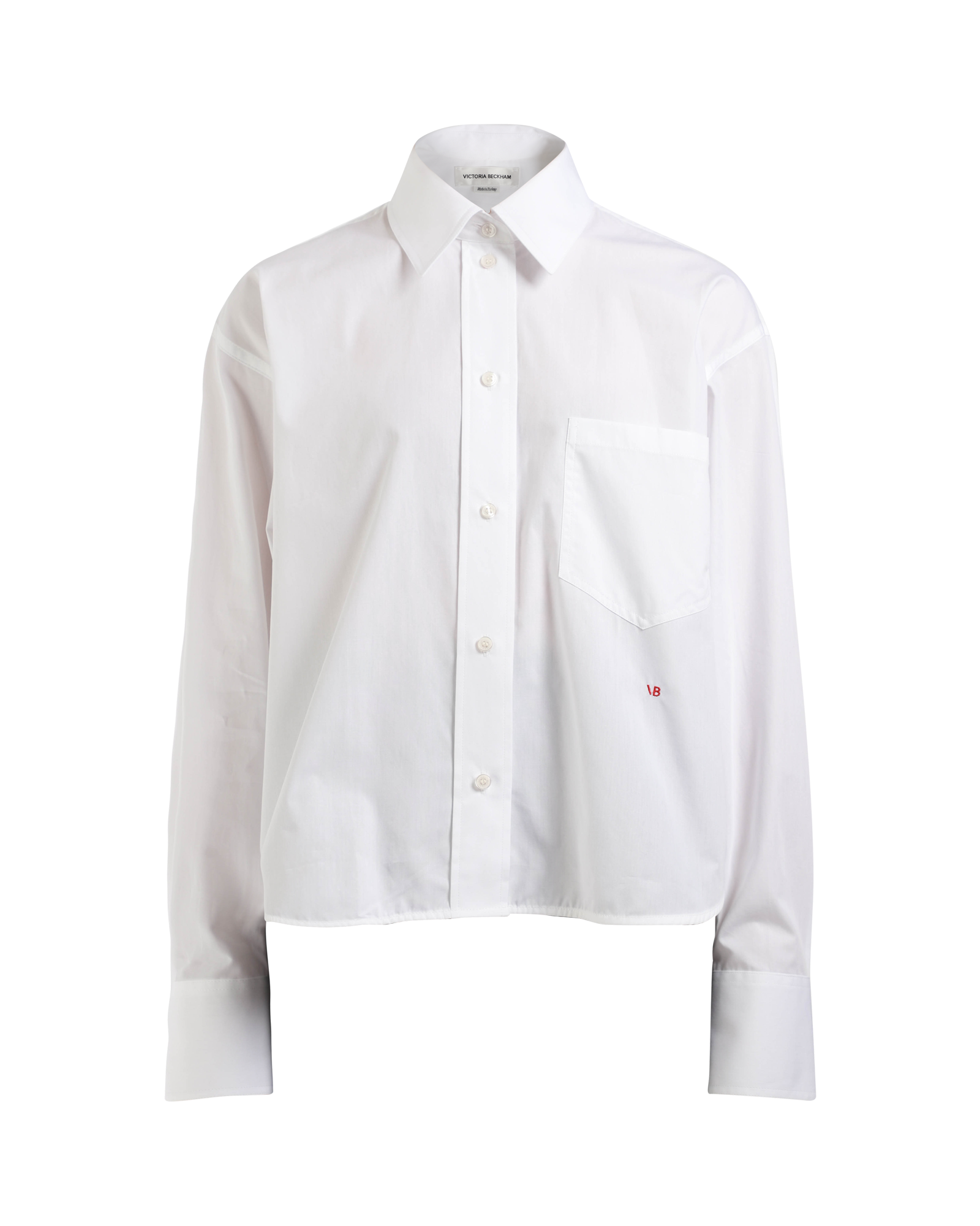 A modern take on the classic white shirt, this piece features crisp sleeve pleats, classic collar, chest pocket and a red VB monogram for subtle sophistication.