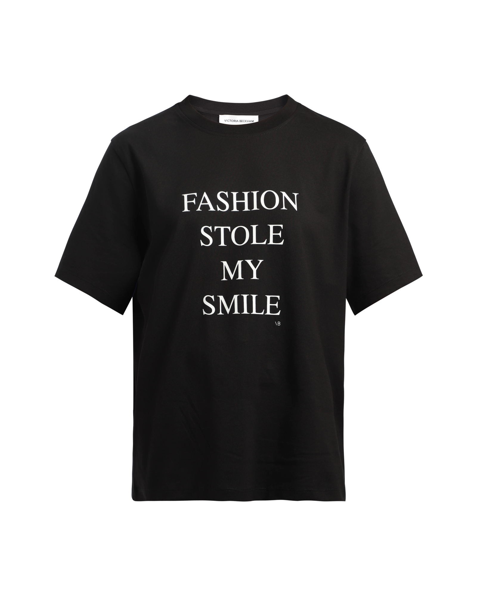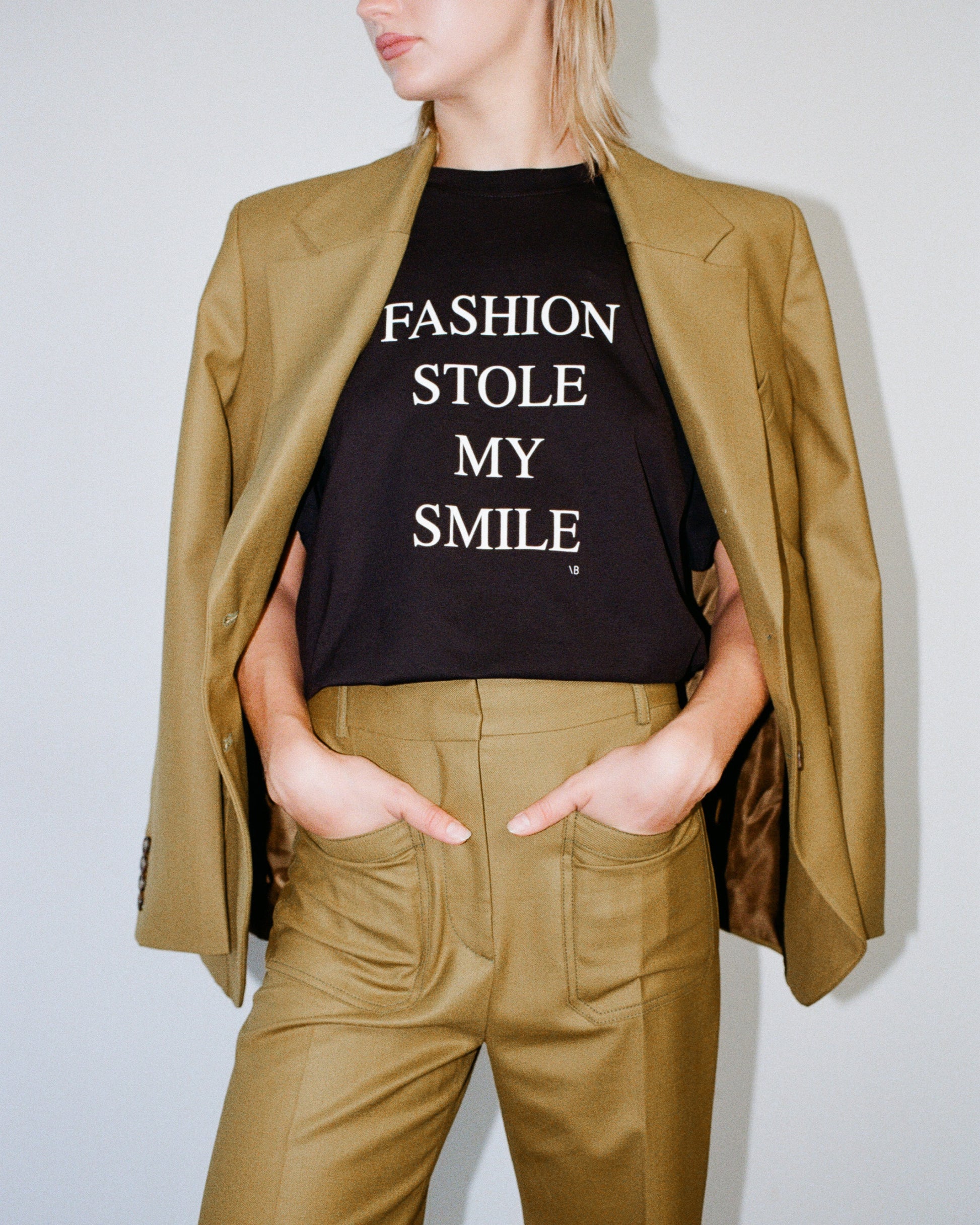 A classic tee made from organic cotton, featuring a crew neckline, loose-fit sleeves, dropped shoulder seams. Playful slogan at front.