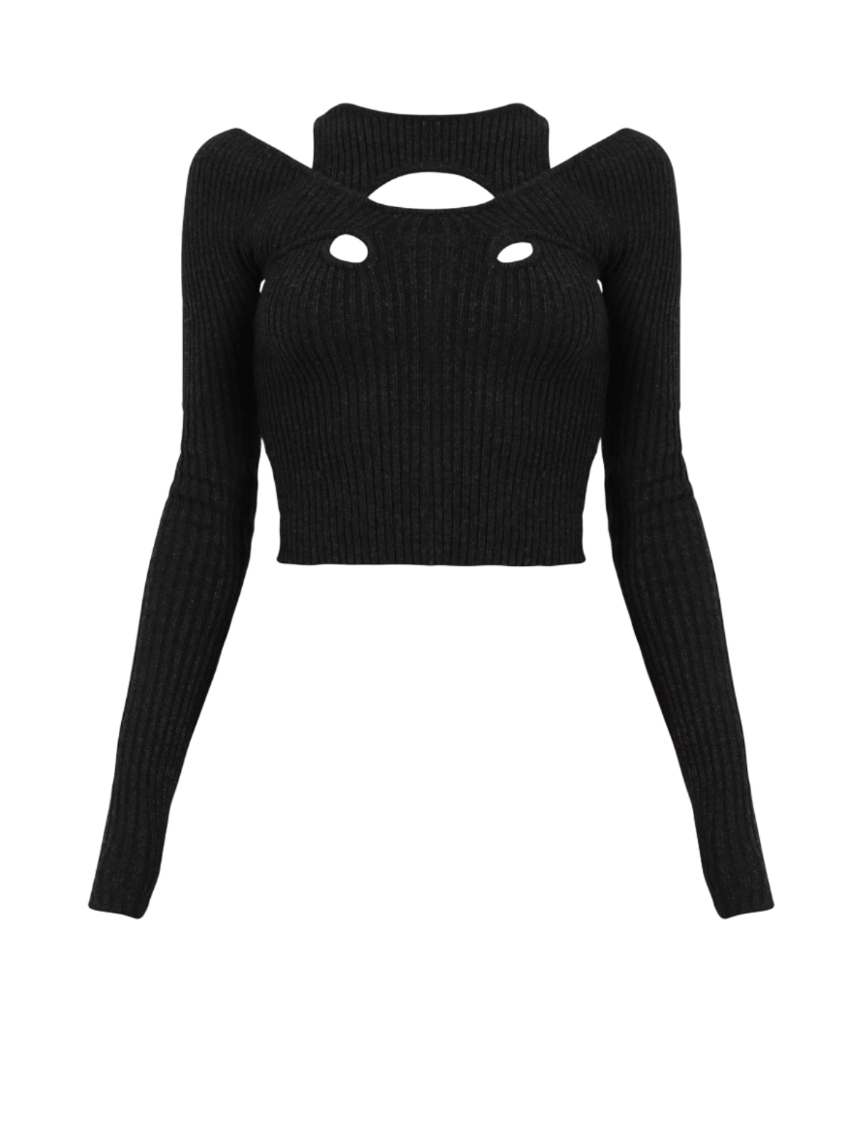 Wynn Hamlyn derry long sleeve top, featuring a rip knit with cut outs, heavy weight yarn and interlocking design.