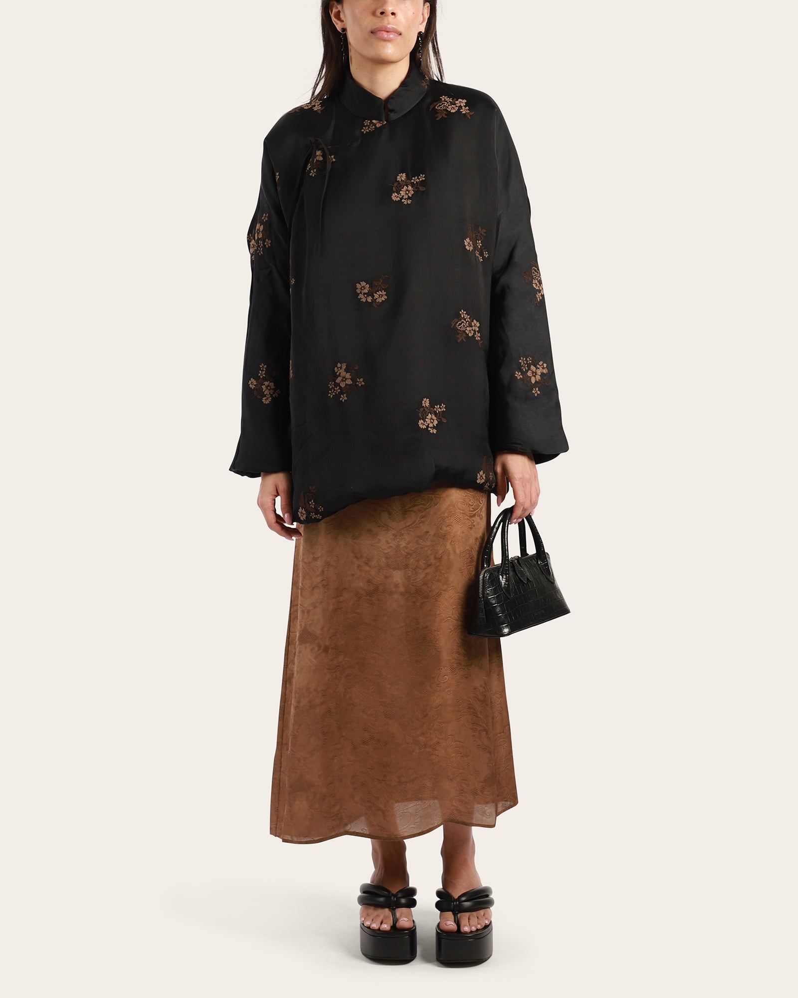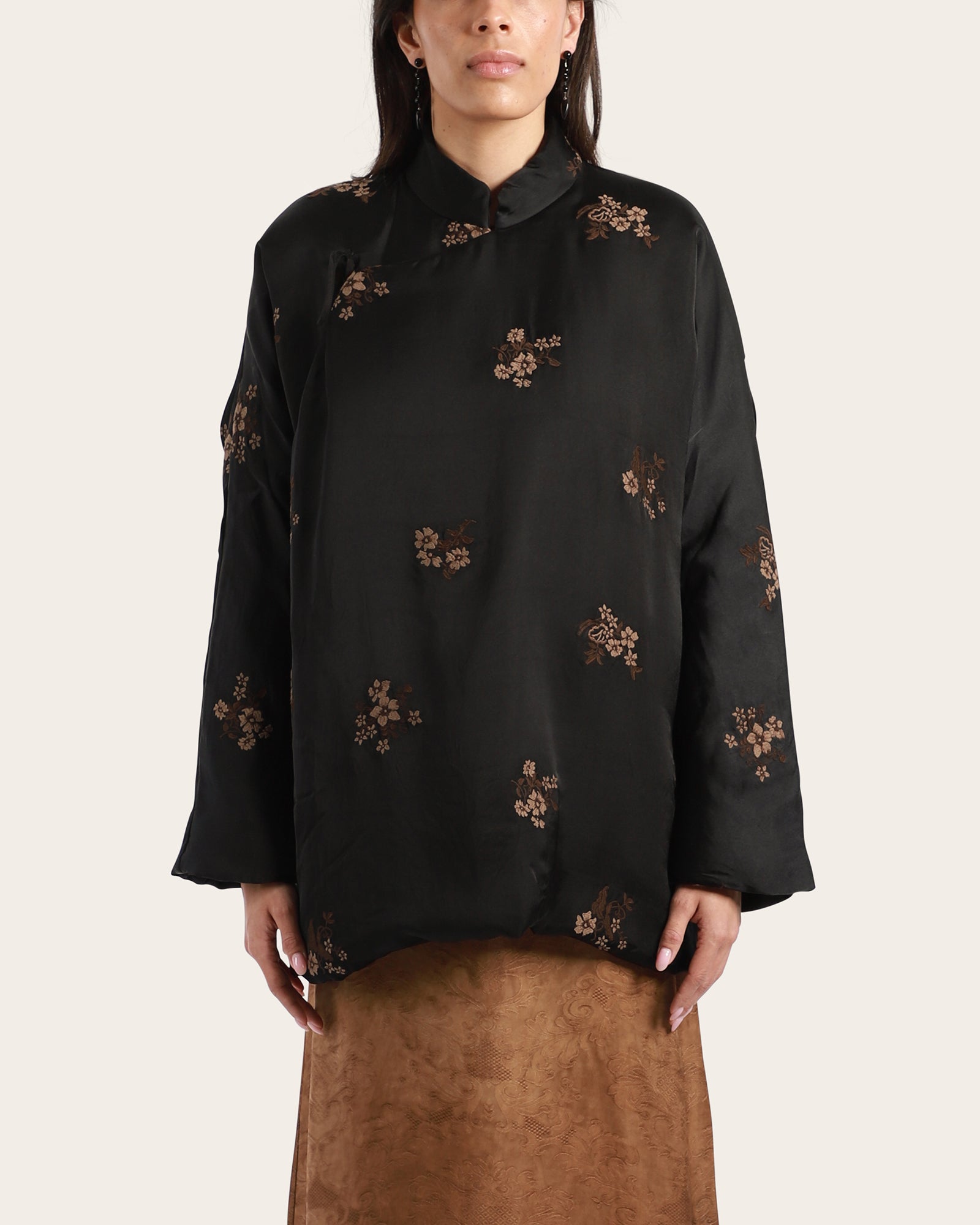 This Italian made jacket is crafted with delicate floral embroidery and finished with subtle side slits for ease of movement. A drawstring closure and side pocket add both function and detail. Lightweight and soft to the touch, it’s an effortless layering piece with refined charm. Made in Italy.