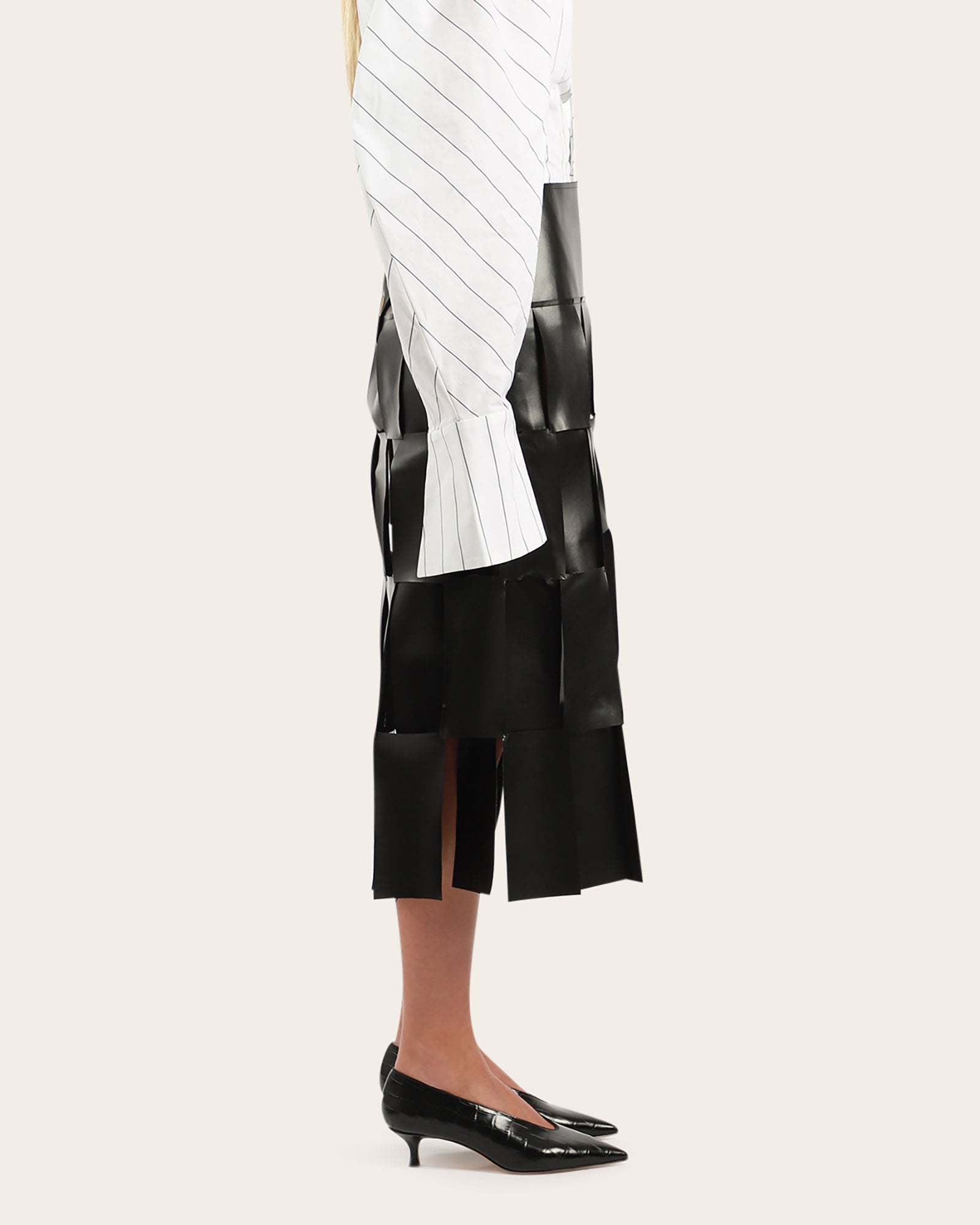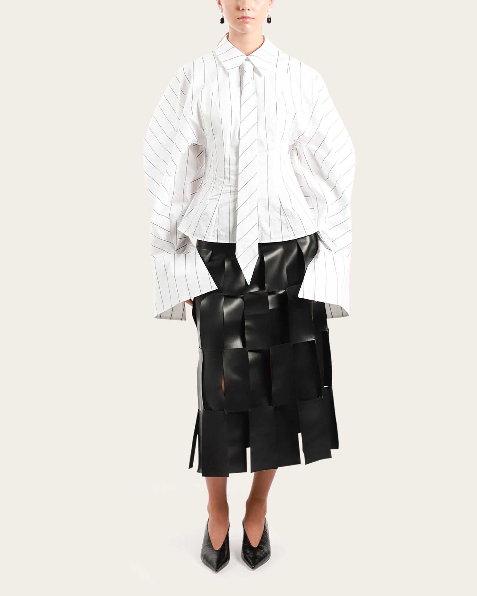 A beautiful piece, featuring cut outs all over delicately stitched together, fitted at the waistline, buttons at back to close and versatile.
