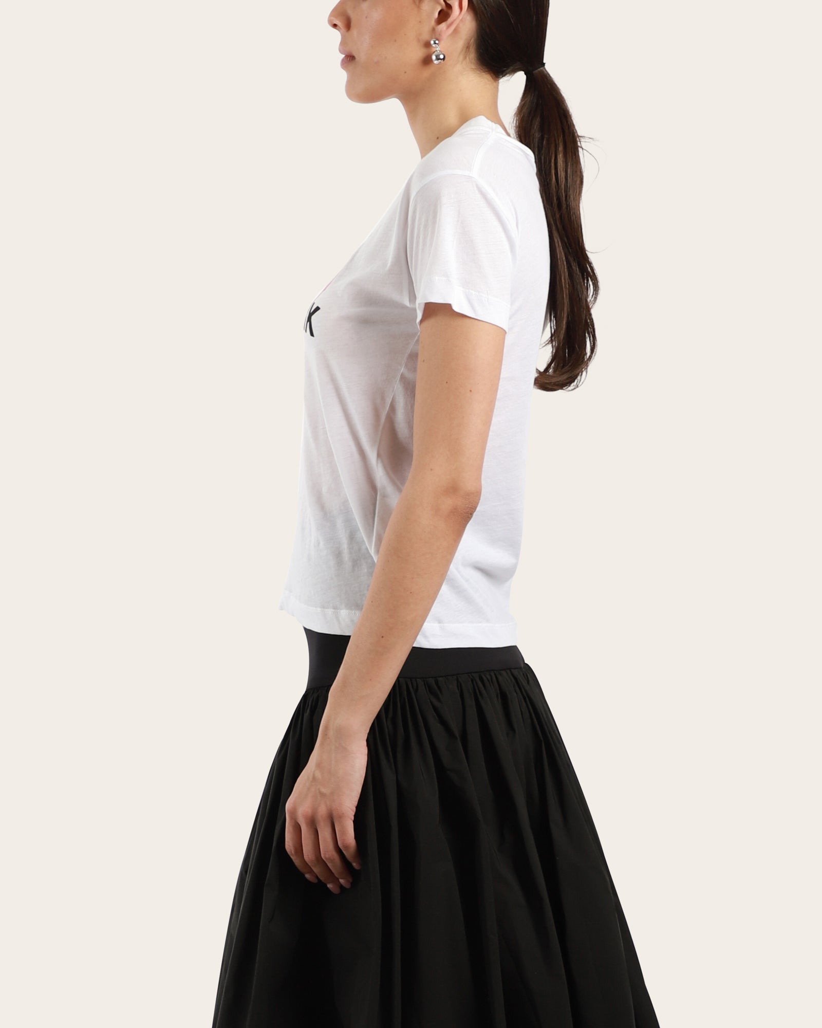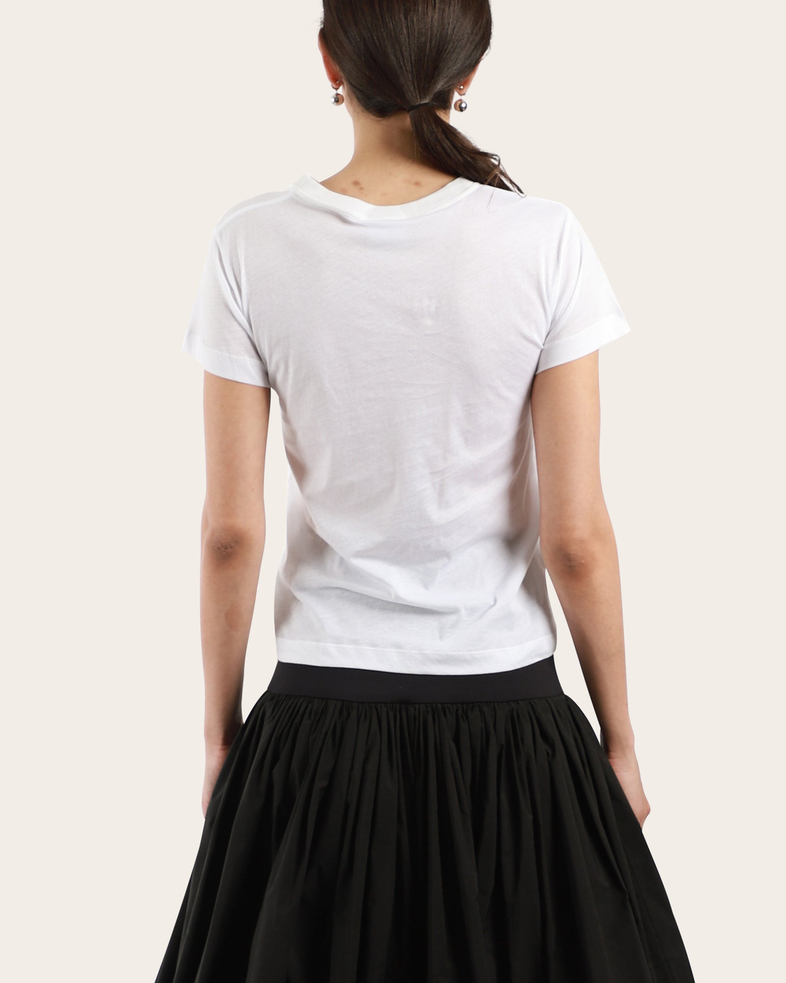 This t-shirt is meant to be fitted and has a slight crop. For a more oversized fit, we suggest sizing up.