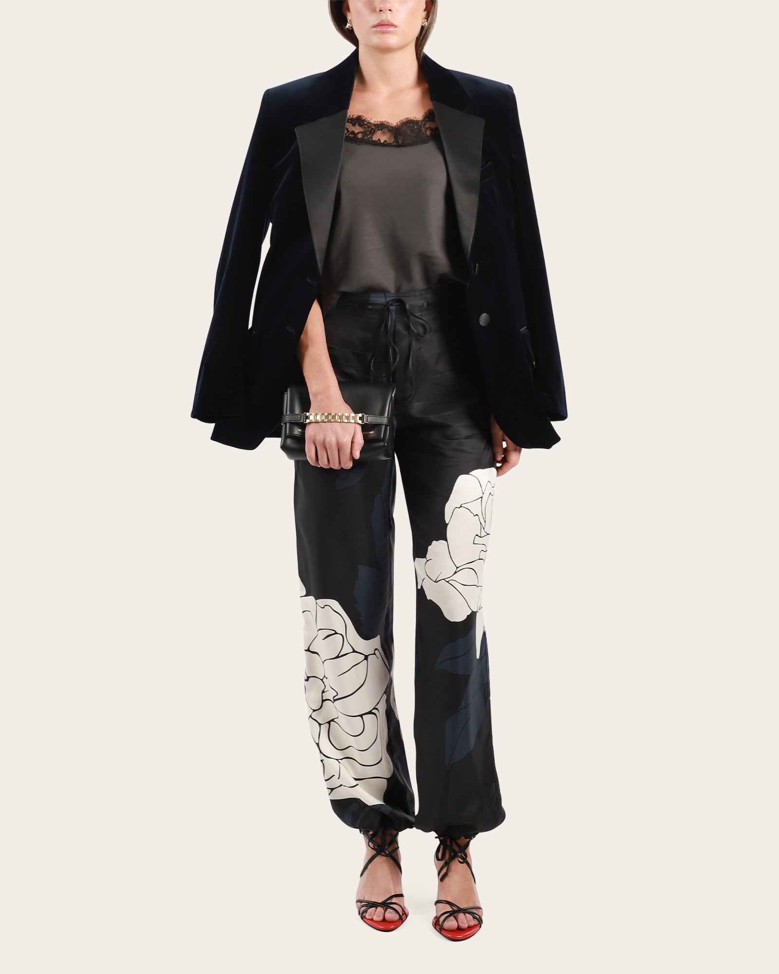 Victoria Beckham’s blazer reimagines the classic tuxedo with modern sophistication. Tailored for a fitted silhouette in plush velvet, it features sleek satin trim along the notch lapels for a polished finish.