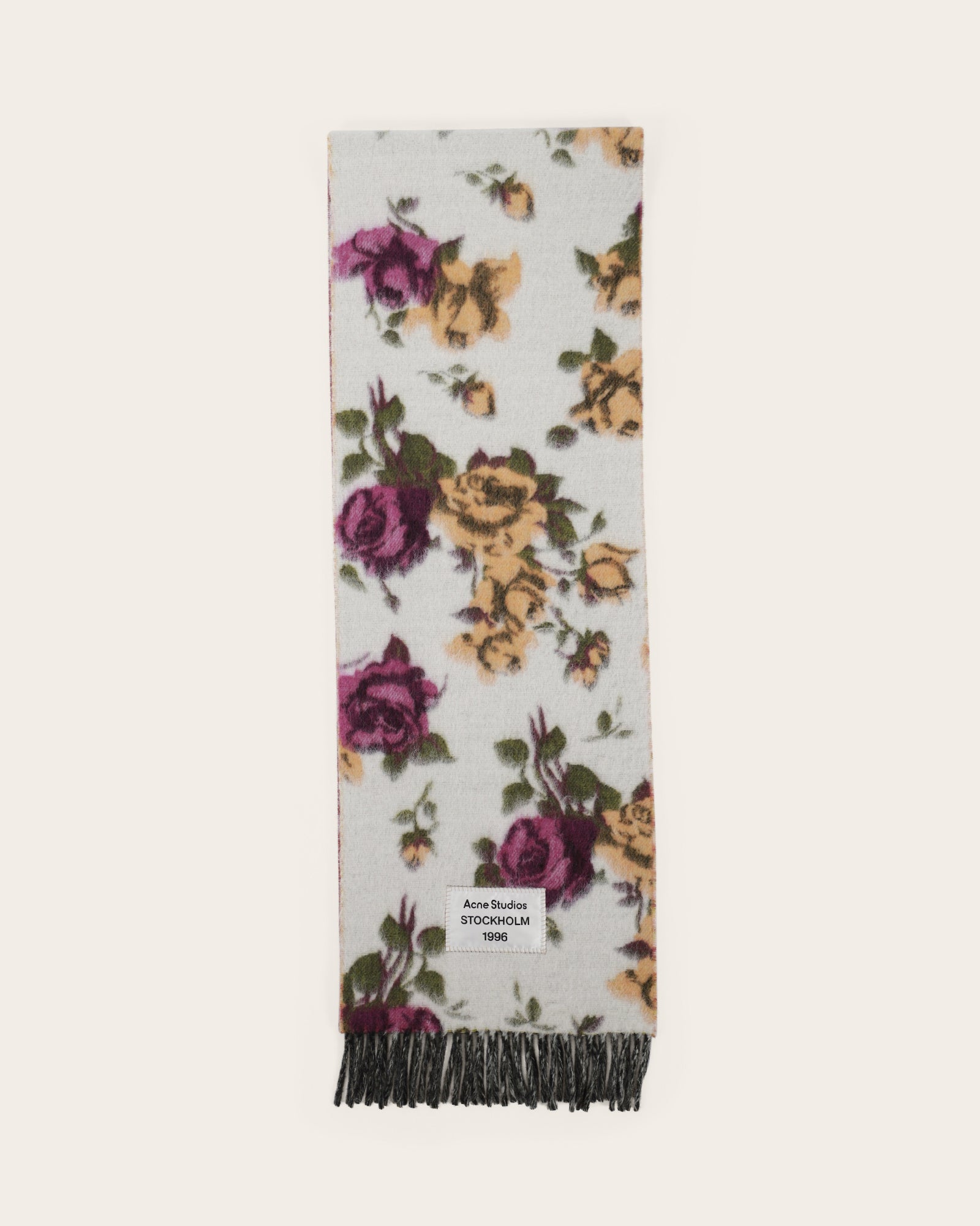 Wrap yourself in comfort and style with this fringed scarf from Acne Studios. Crafted from a soft alpaca-wool blend, it showcases a seasonal floral motif and is finished with the signature Acne Studios 1996 embroidered logo label. Made in Italy.