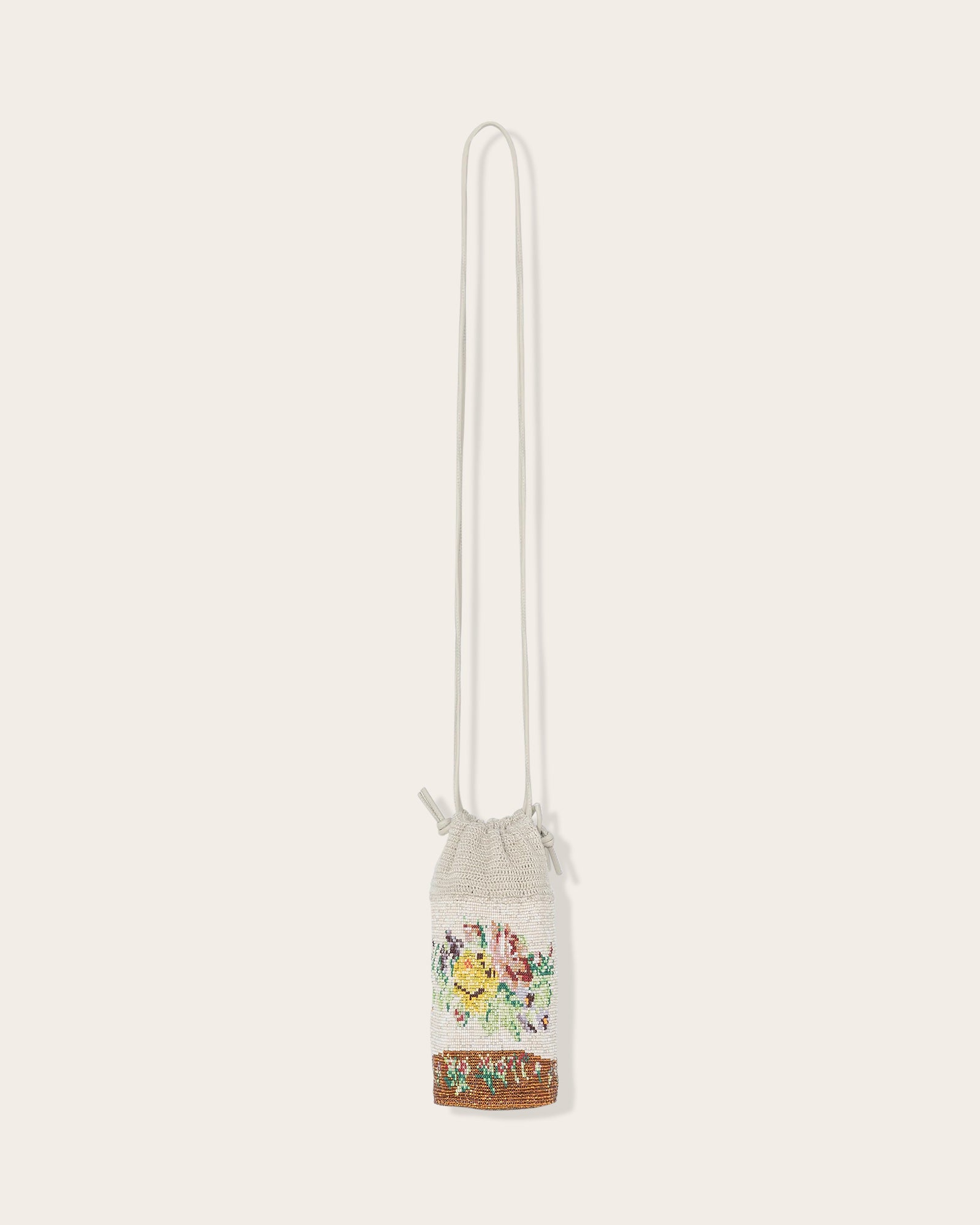 This unique piece is the result of a collaboration between Cordera and a women's community in Central America. Mixing the beading and crocheting techniques, it features floral motifs, a charming bucket-shaped design and includes a drawstring closure and shoulder strap.
