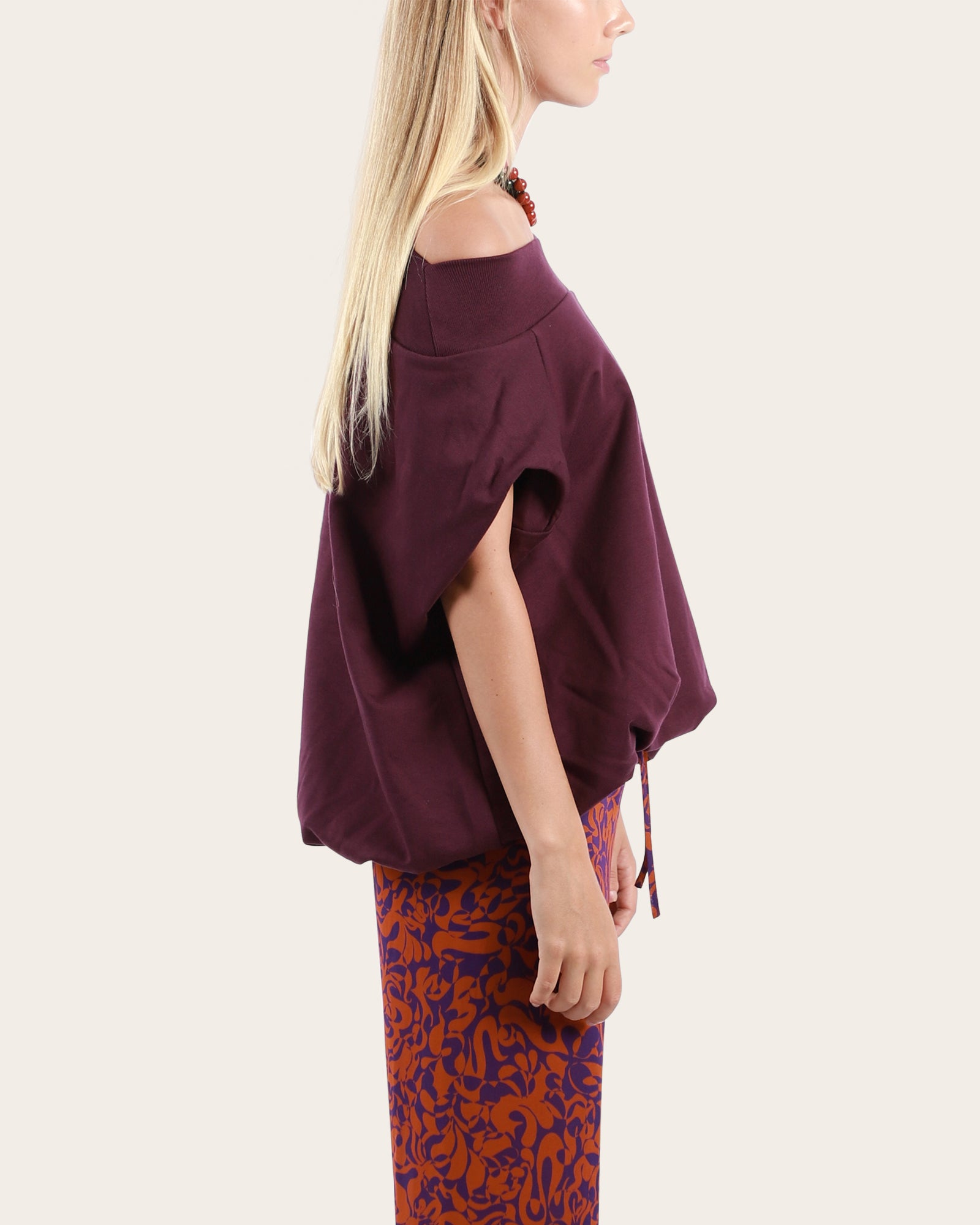 The Hamels Off-Shoulder Top is a relaxed, boxy silhouette with an off-shoulder neckline, short cap sleeves and a gathered hem. The top can be worn off-shoulder or off both shoulders.