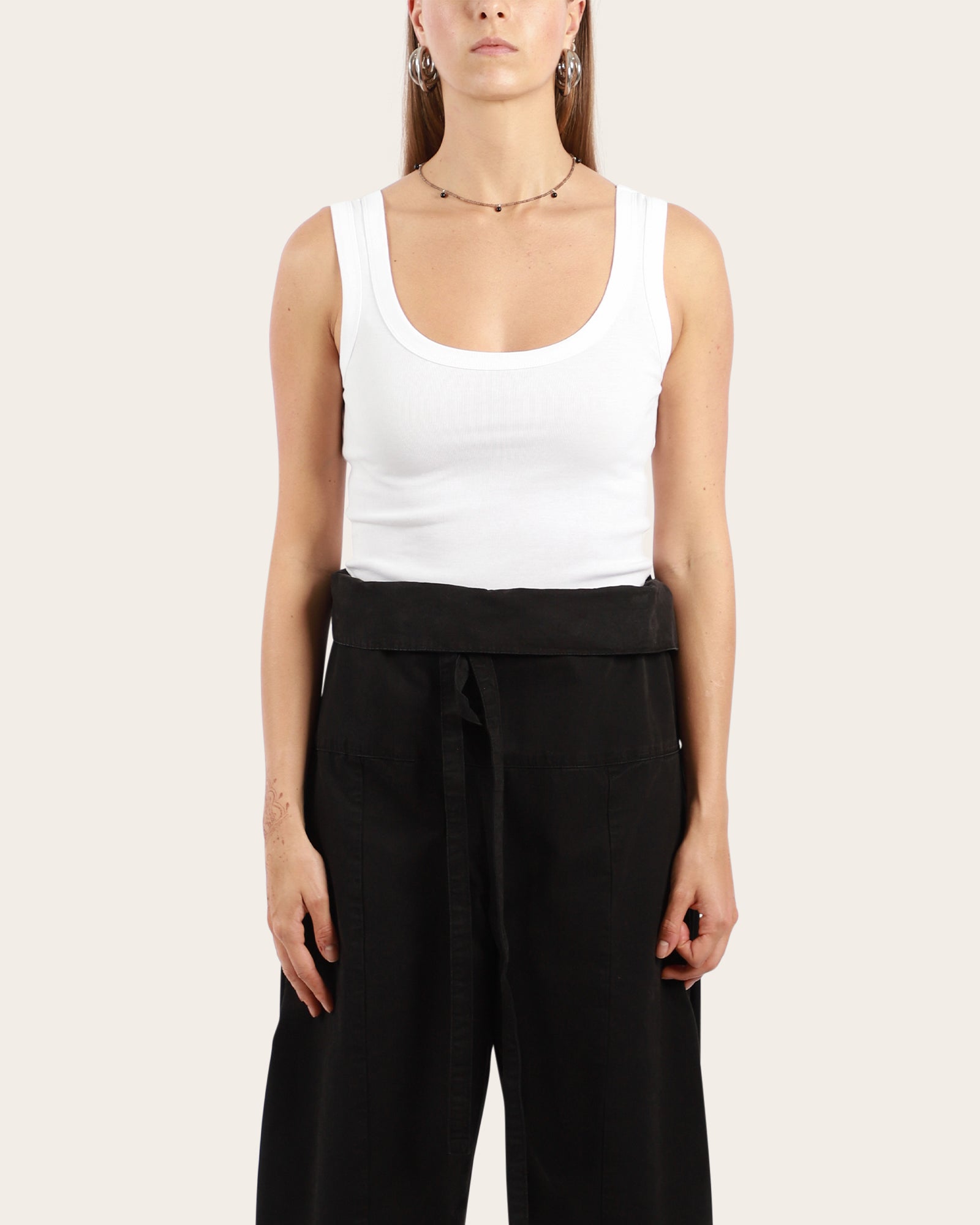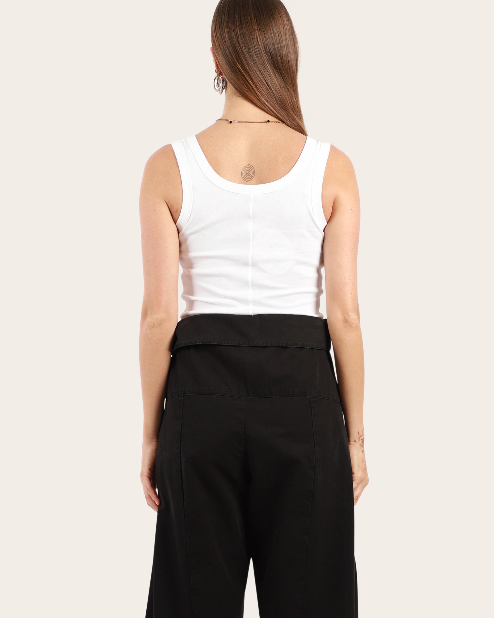 This fitted tank offers a refined take on a classic silhouette, with a soft scoop neck and back and a subtle double-stitched cut-off seam. Crafted from medium-weight organic cotton — effortless with jeans or trousers.