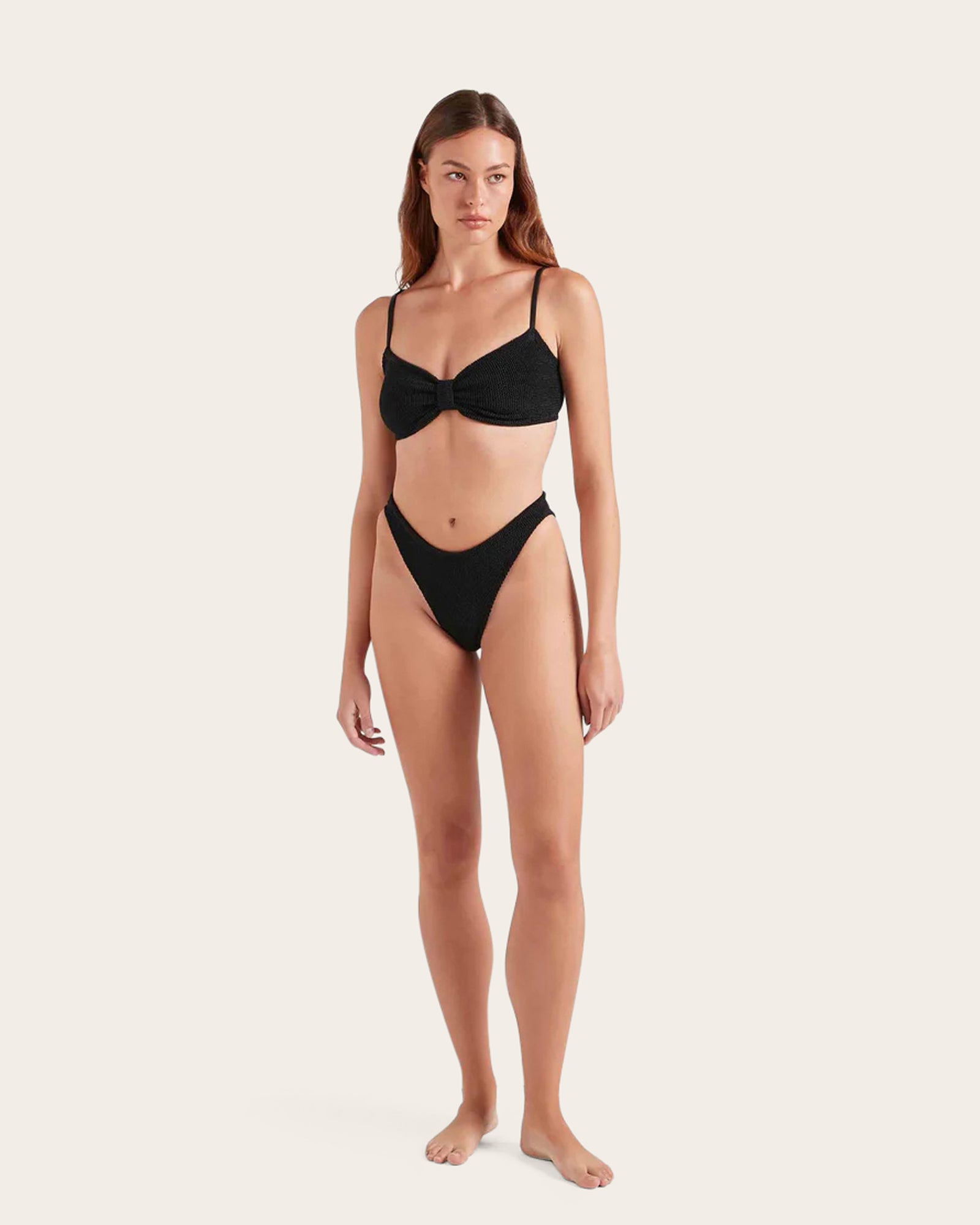 Alicia embodies a sweet, effortless style with its delicate spaghetti straps and softly gathered, bow-inspired detailing across the top.