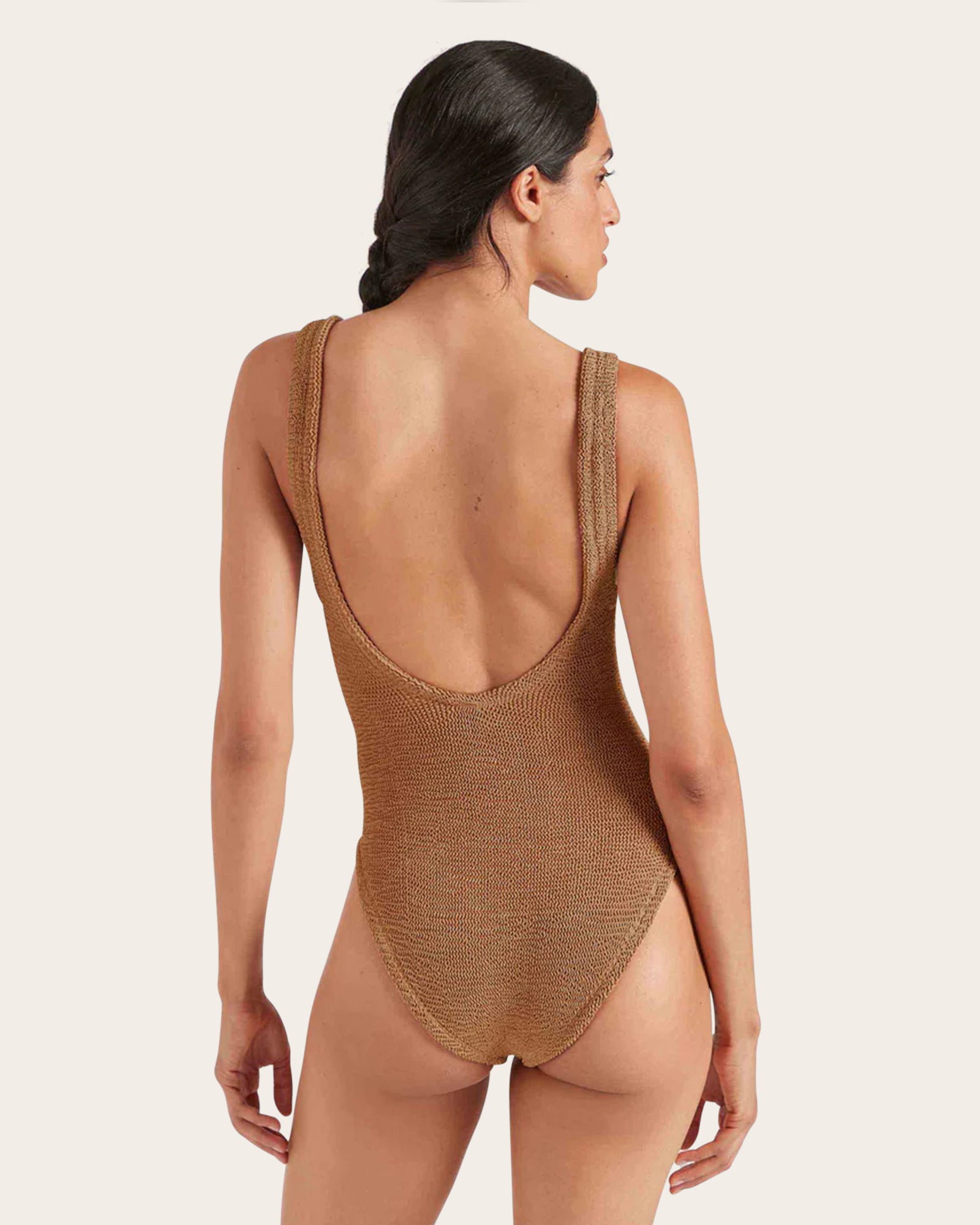 Some styles never fade. With noughties-inspired tortoiseshell accents, a dipped neckline, and a low scooped back, this iconic swimsuit is made to turn heads. Crafted from the signature crinkle fabric that stretches and adapts to your body through every stage—perfect for before, during, and after pregnancy.