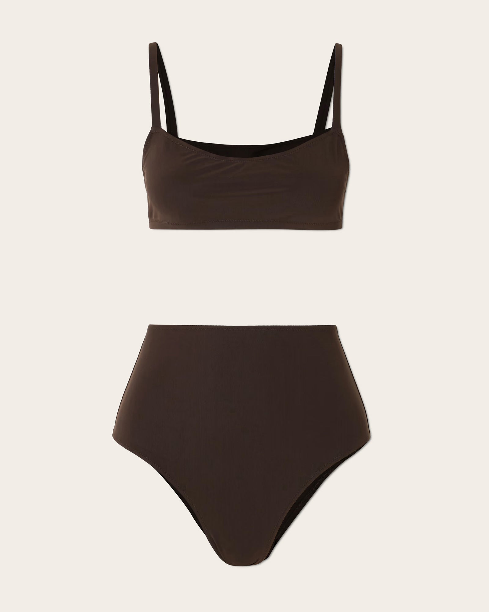 Undici is a relaxed two-piece designed for effortless, everyday swim. The pull-on top features a soft rounded neckline and elasticated straps for gentle support and a flexible, comfortable fit. Paired with classic high-rise bottoms that sit at the navel, it’s an understated set made for simple, easygoing style. Made in Italy.