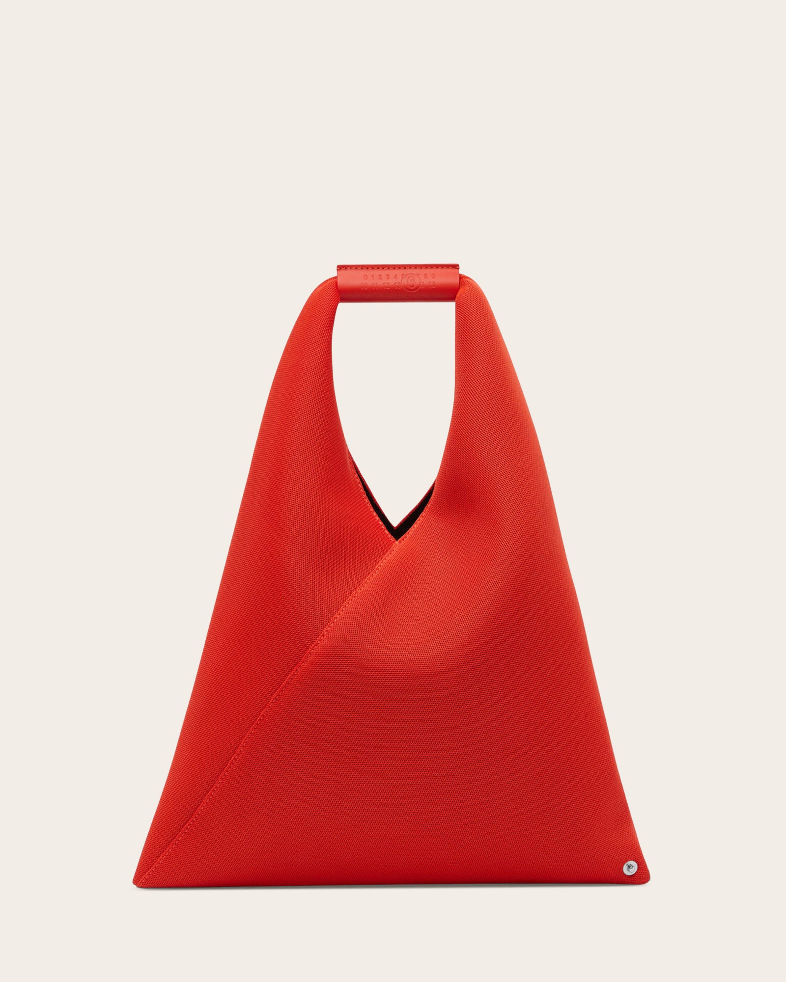 The MM6 Maison Margiela Mesh Japanese Tote Bag features a mesh body with leather trim, a single top handle, and a signature single-stitch logo.